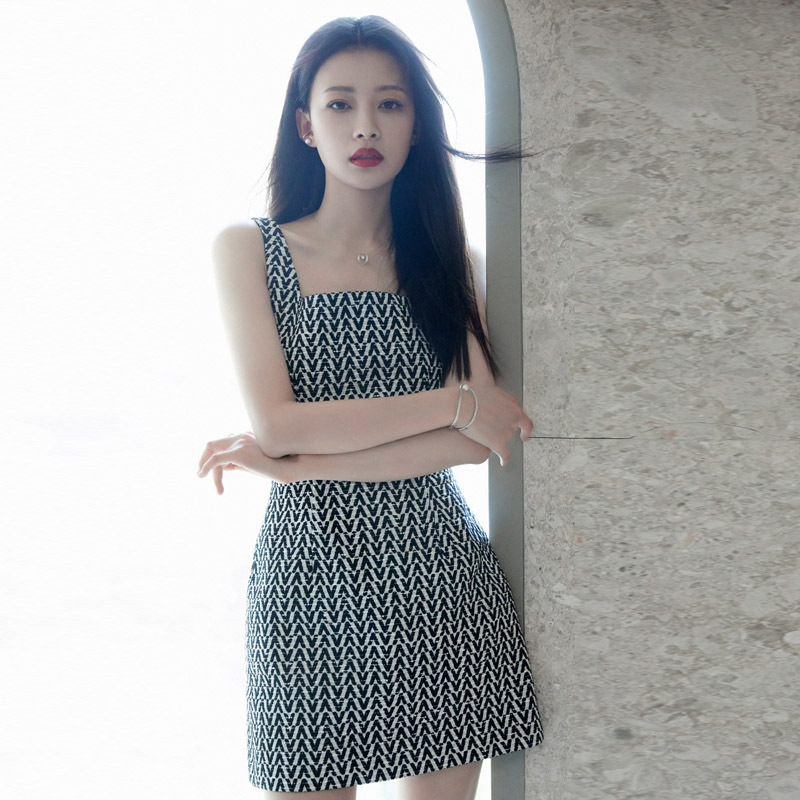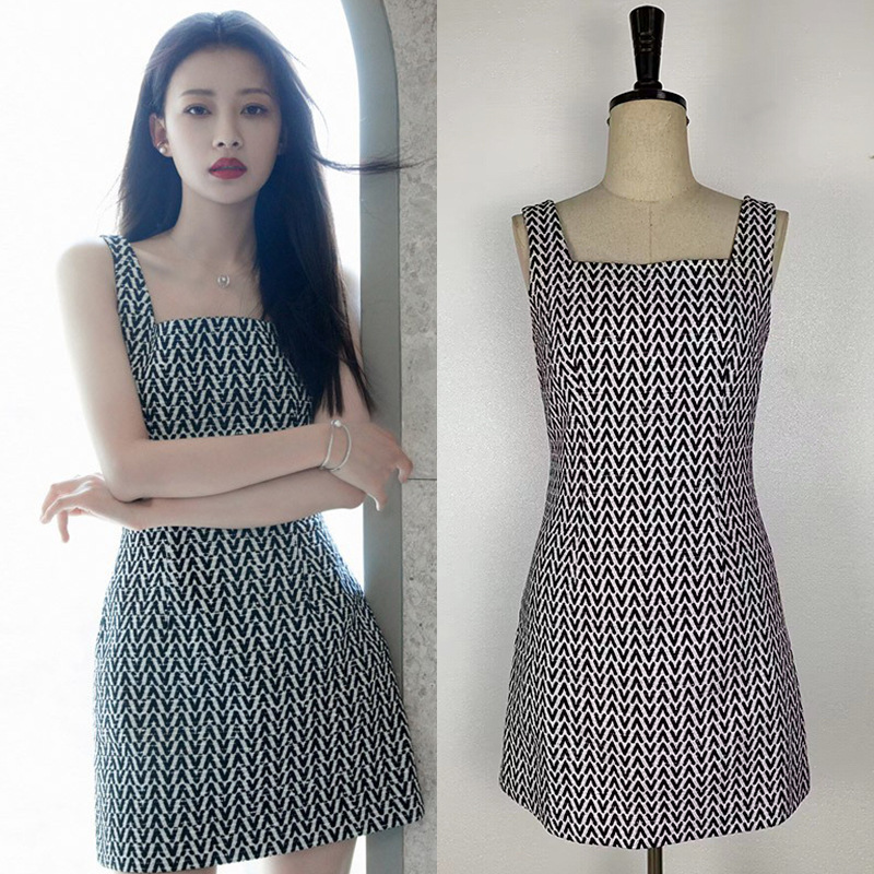 [В наличии] Sun Yi Star с твидовым жилетом с высокой талией и маленьким тонким платьем в стиле Шанель 2023