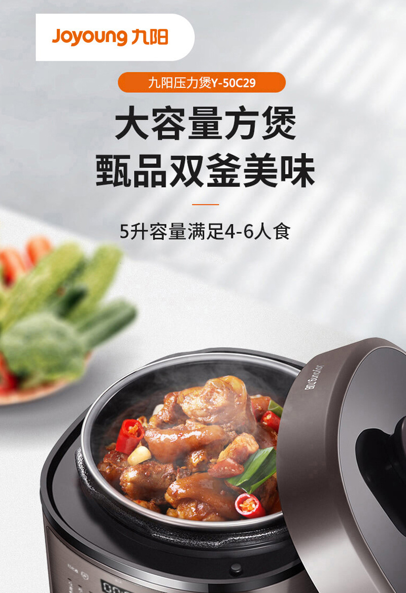 Электрическая скороварка Jiuyang с двойным вкладышем, интеллектуальная автоматическая скороварка, многофункциональная 5 л, рисоварка большой емкости, электрическое давление