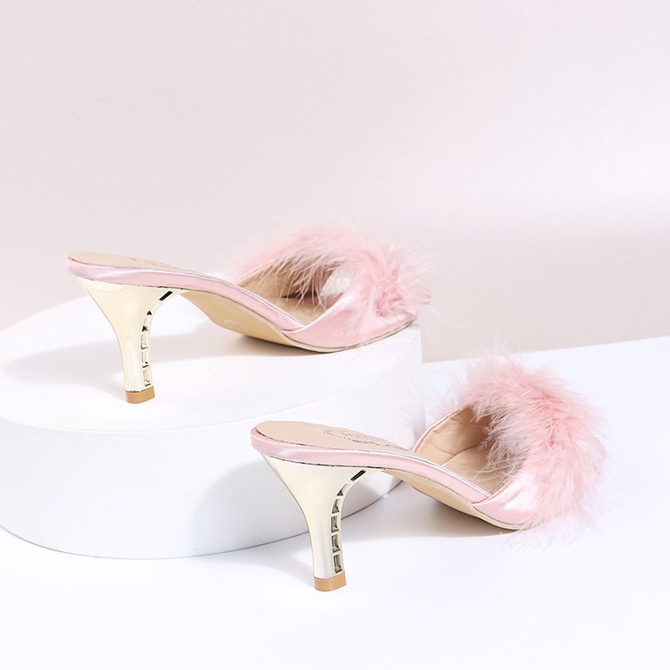 Тапочки Amazon, пушистые модные тапочки на высоком каблуке, Женская Внешняя торговля, элегантные босоножки больших размеров на тонком каблуке с открытым носком