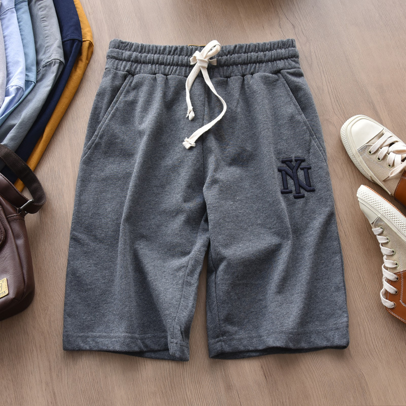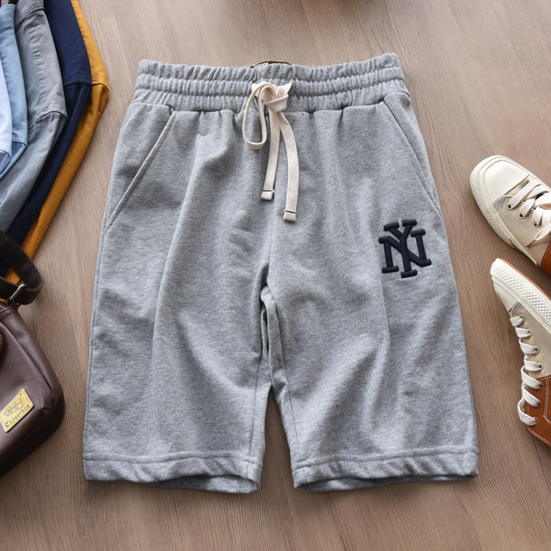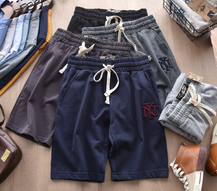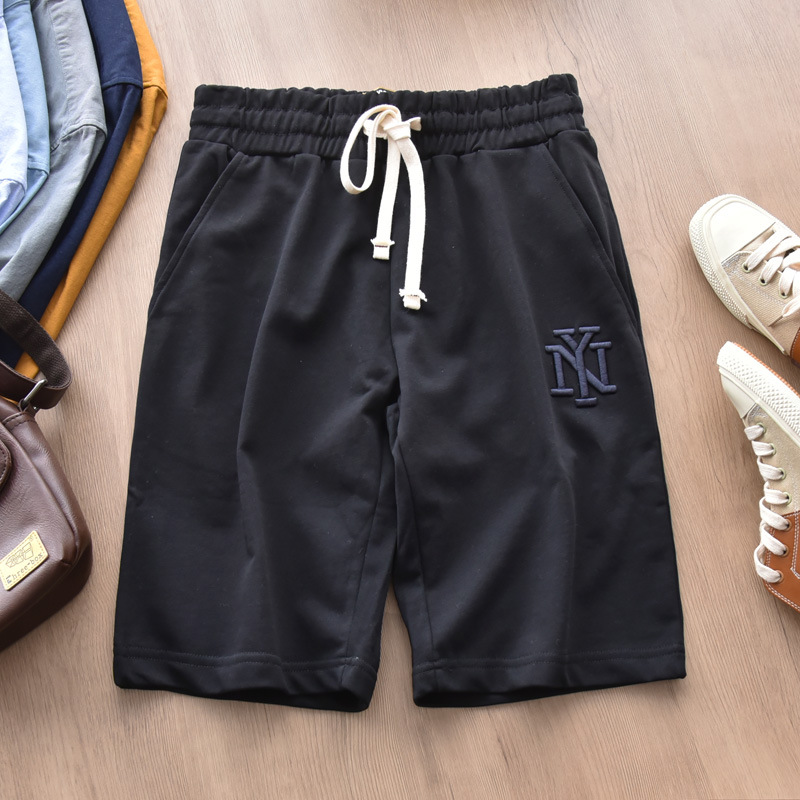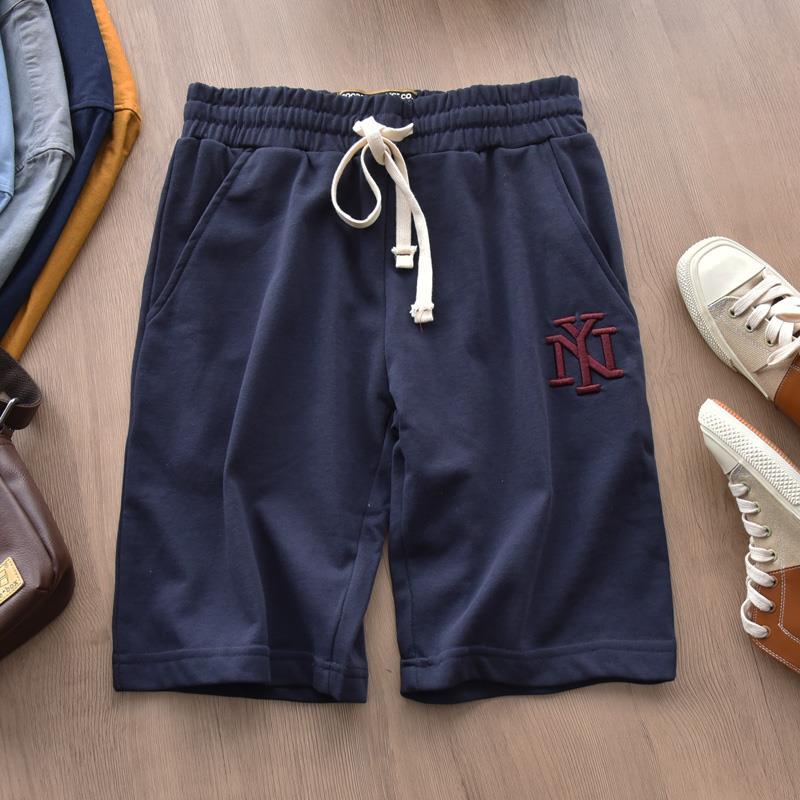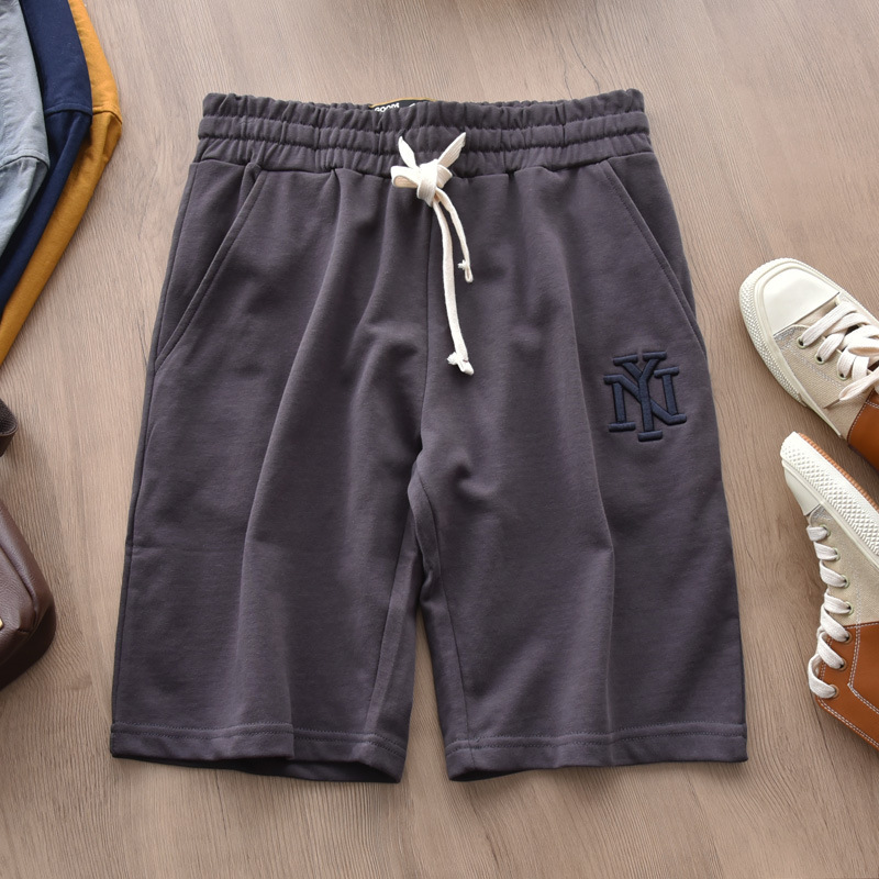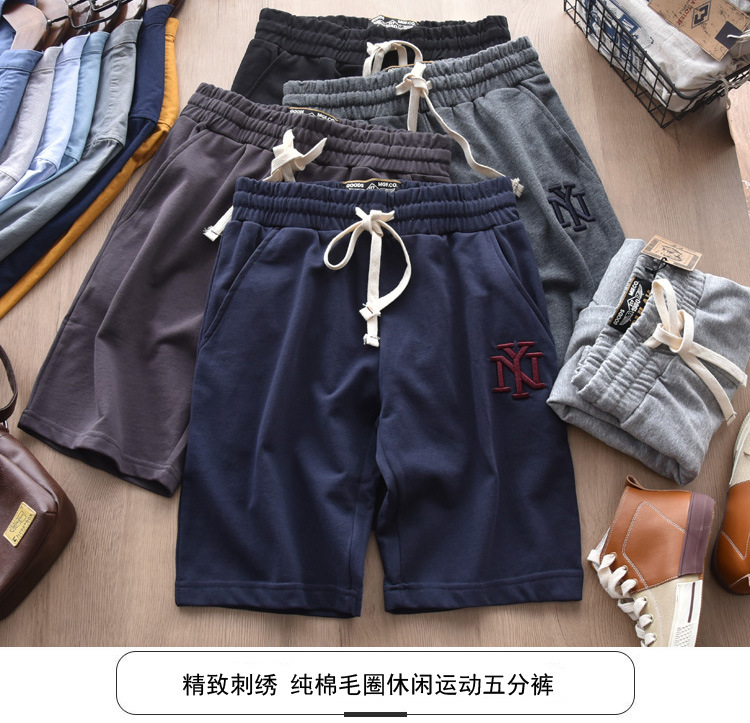 Изысканная вышивка! Летние хлопковые махровые спортивные шорты, мужские брюки средней длины, универсальные японские повседневные свободные модные брюки средней длины