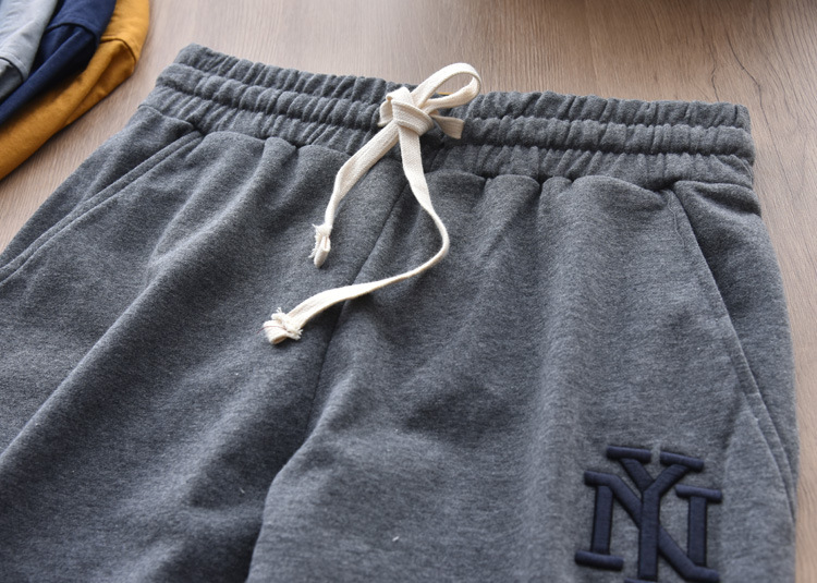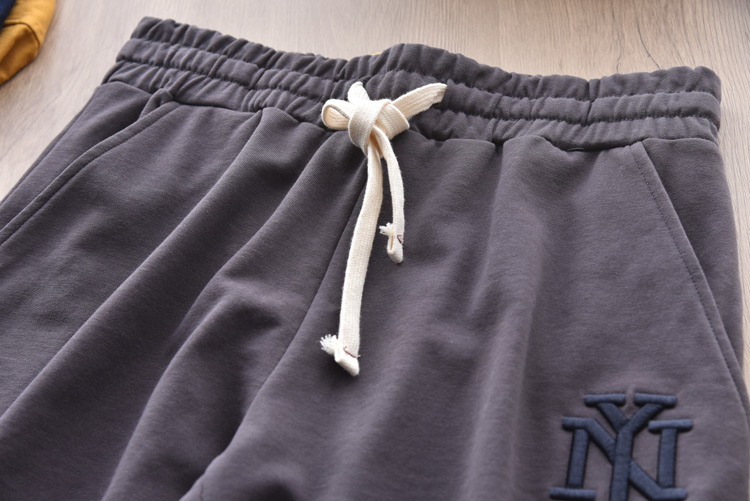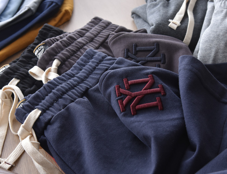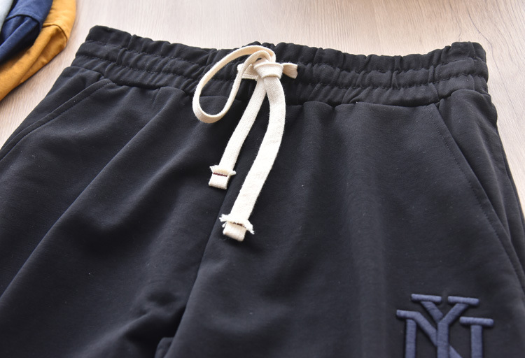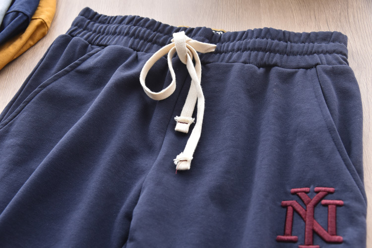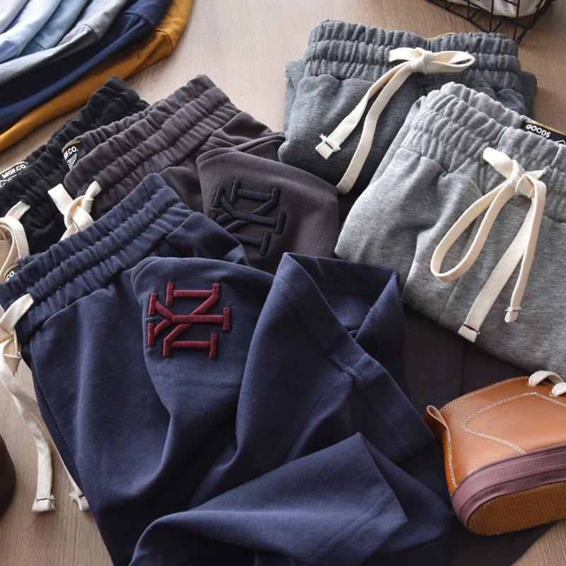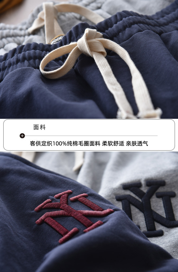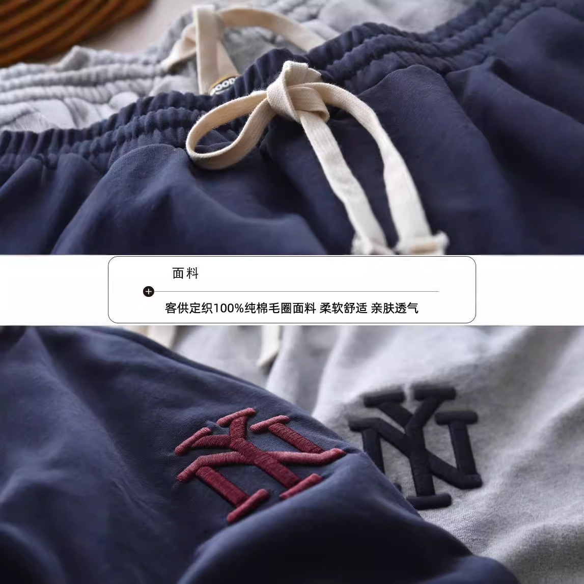 Изысканная вышивка! Летние хлопковые махровые спортивные шорты, мужские брюки средней длины, универсальные японские повседневные свободные модные брюки средней длины