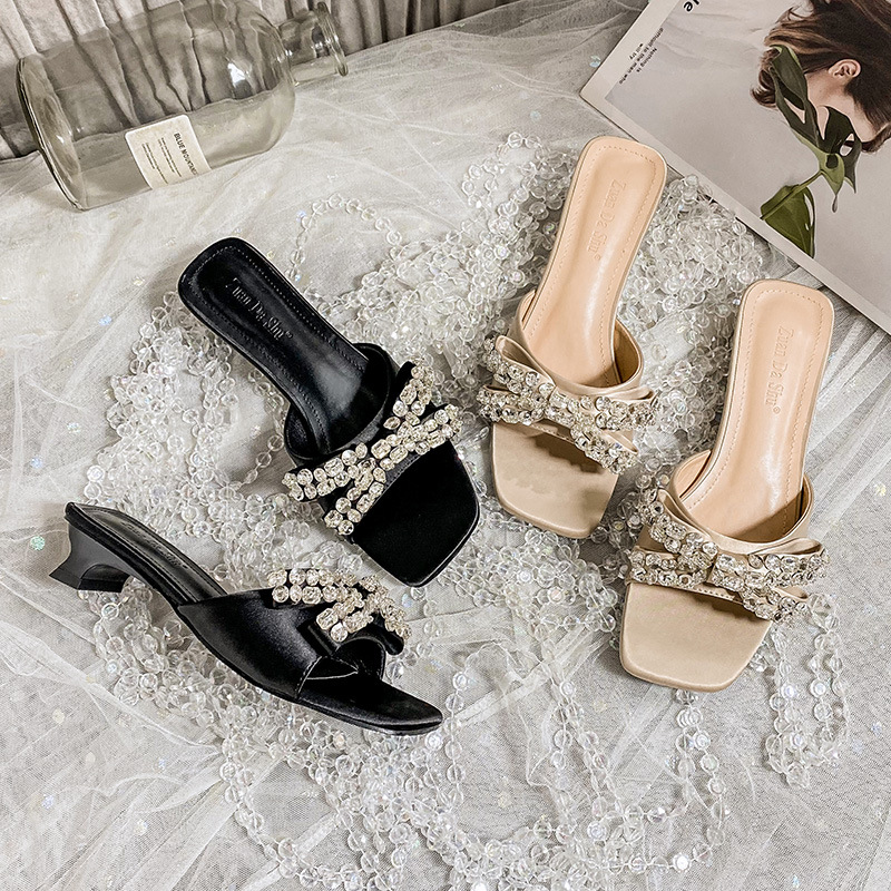 Новинка 2023 года, летние сексуальные женские босоножки на высоком каблуке с ромбовидным ремешком, босоножки на толстом каблуке с кристаллами для верхней одежды, большой размер от 41 до 43