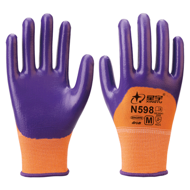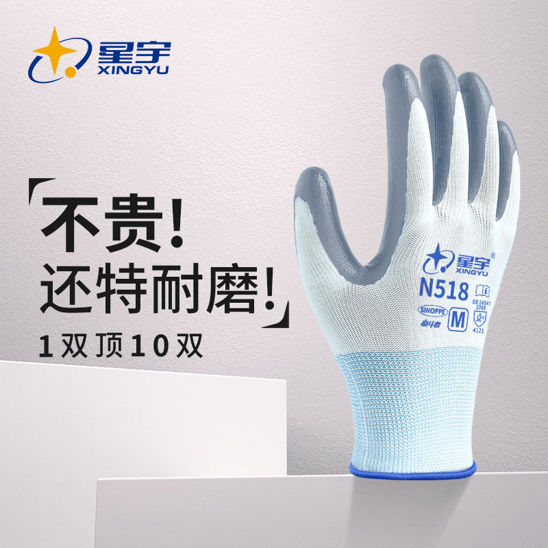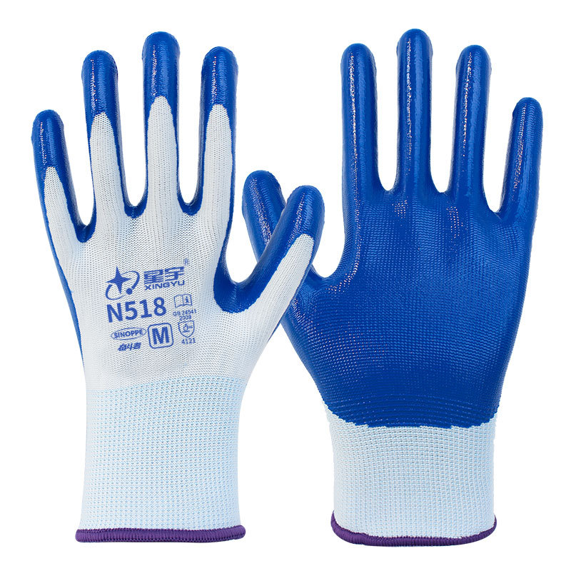 Рабочие перчатки Xingyu N518 оптом, износостойкие, нескользящие, с покрытием, усиленные рабочие перчатки.