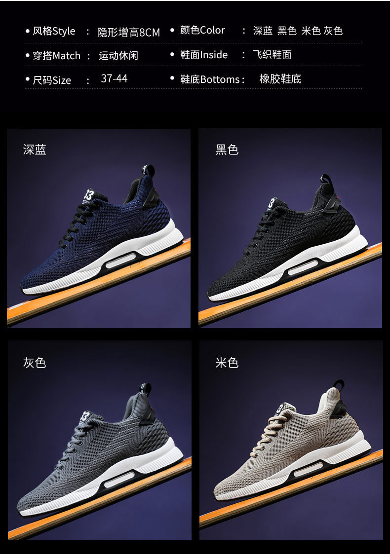 2022 Весна невидимая Внутренняя высота 8 см Мужская обувь повседневная модная обувь мужские модные дышащие мужские кроссовки оптом