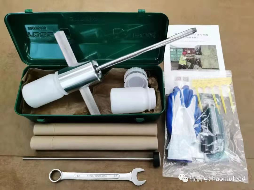 1、取样器与草捆形成90度角,双手紧握把手平行直角快速插入草捆取样点位置,注意取样角度保持90度左右范围,角度偏差太大容易造成取样针弯曲,也容易造成取样误差。