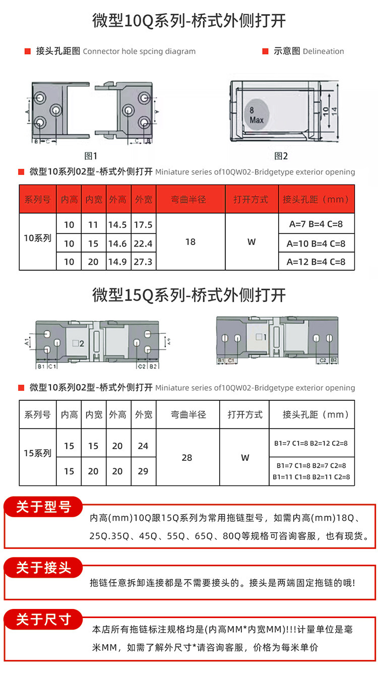 规格2:10*15mm 拖链开口式【带接头】,产品净重:160g 。