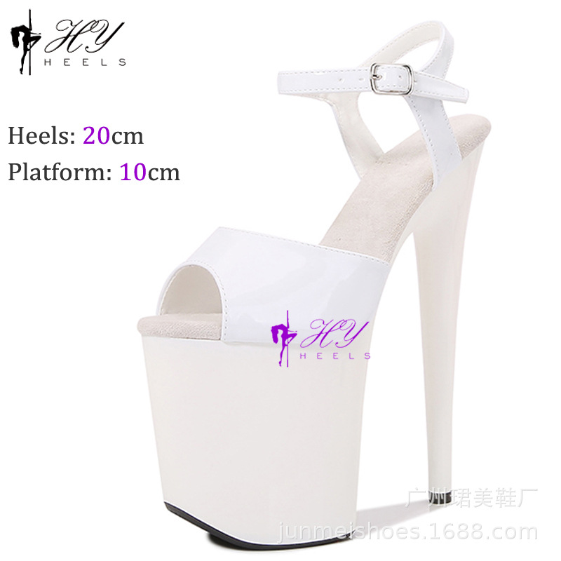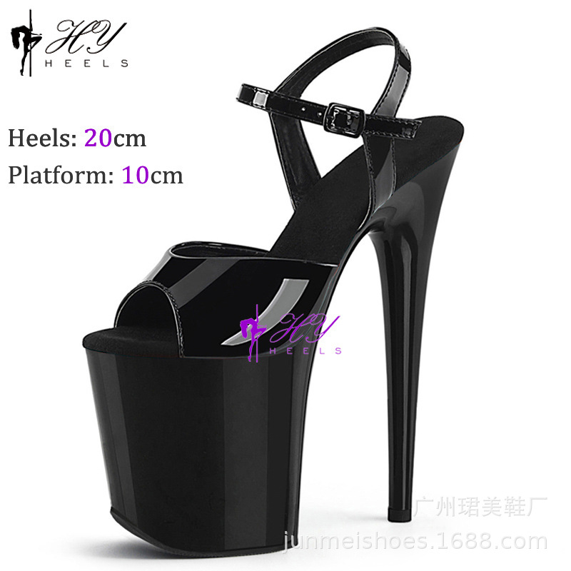 Сандалии на очень высокой платформе 20 см из лакированной кожи, сексуальные, больших размеров, для танцев на пилоне, с глянцевым покрытием