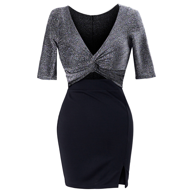 Сексуальное платье для ночного клуба, модная искусственная одежда из двух частей с низким вырезом и короткими рукавами, рабочая одежда, мини-юбка в бедрах