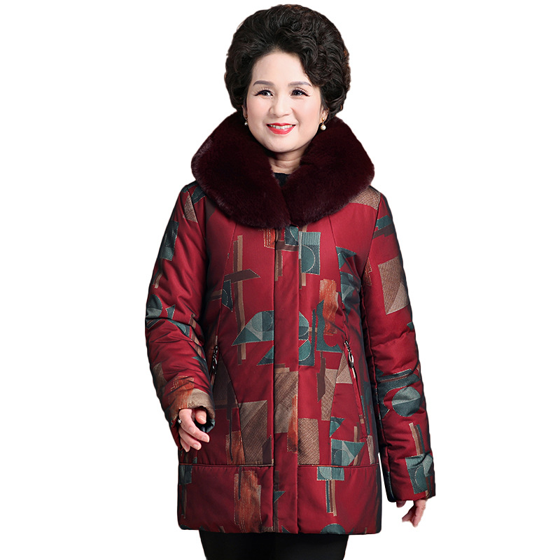 2021 новый женский пуховик для женщин среднего и пожилого возраста, утолщенный и теплый, в стиле бабушки, хлопковое пальто больших размеров со съемной подкладкой, белый утиный пух.