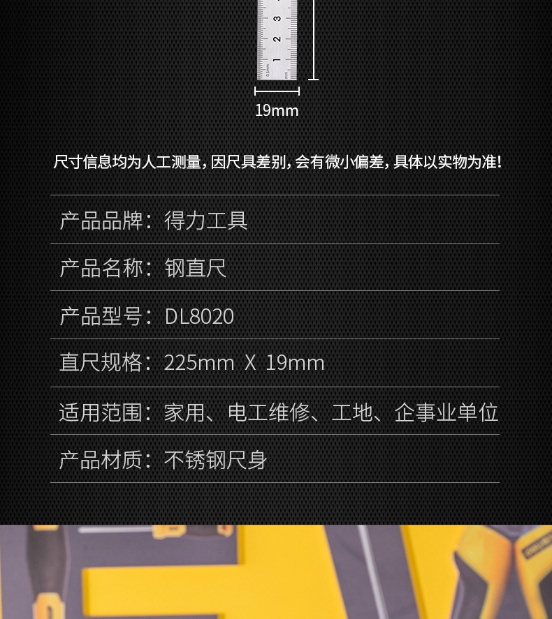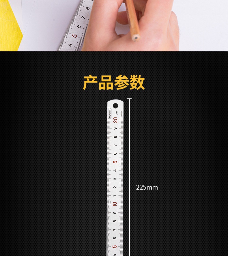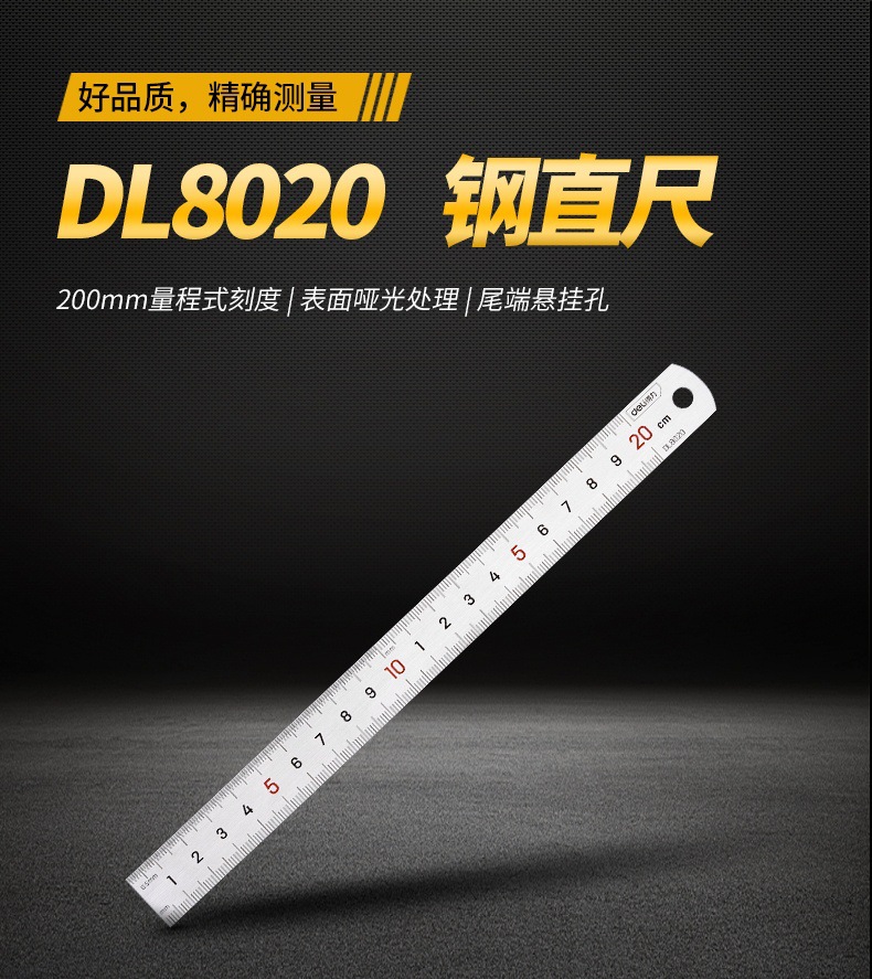 Deli Tools DL8020 Нержавеющая сталь Прямая линейка Шкала Метрическая шкала Чертеж Стальная линейка 20 см