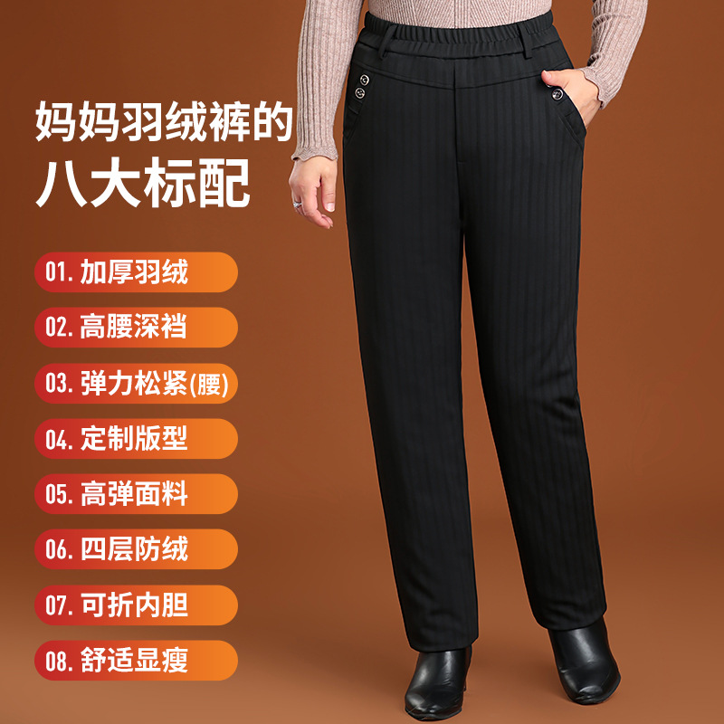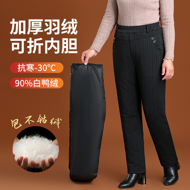 2021 новые утепленные пуховые брюки для женщин среднего и пожилого возраста с высокой талией и съемной подкладкой, зимние больших размеров.
