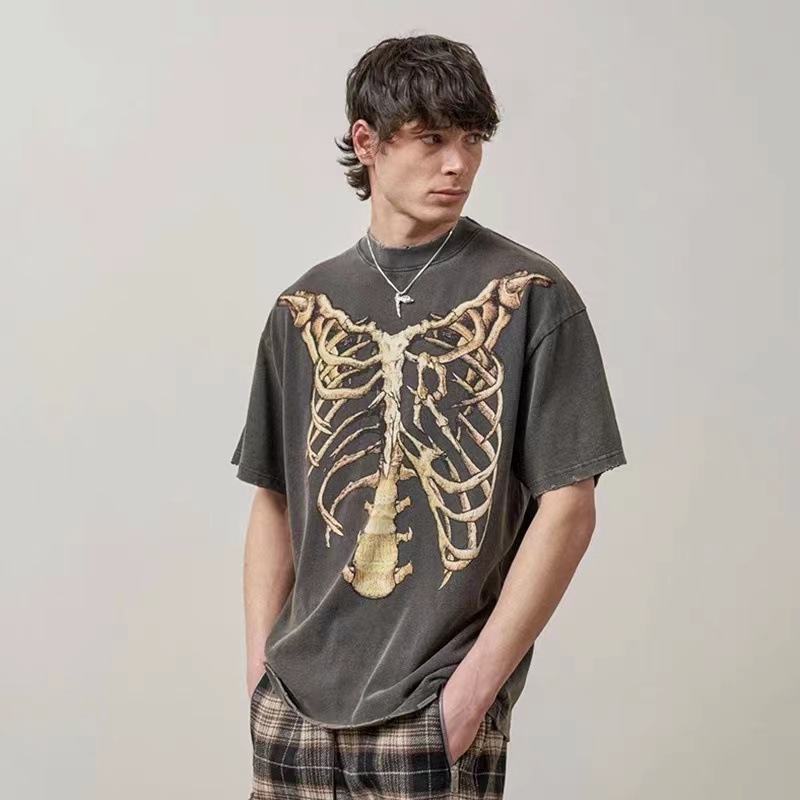 Трансграничный американский модный бренд REPRESENT LIFE, скелет, вымытый старой главной улицей, свободная футболка с короткими рукавами для мужчин и женщин