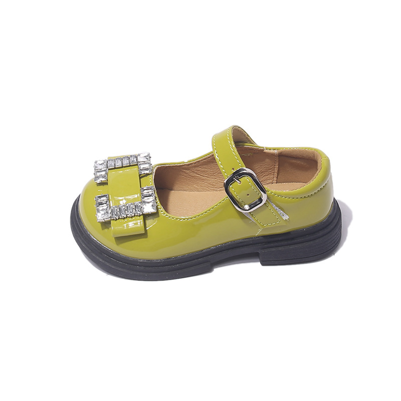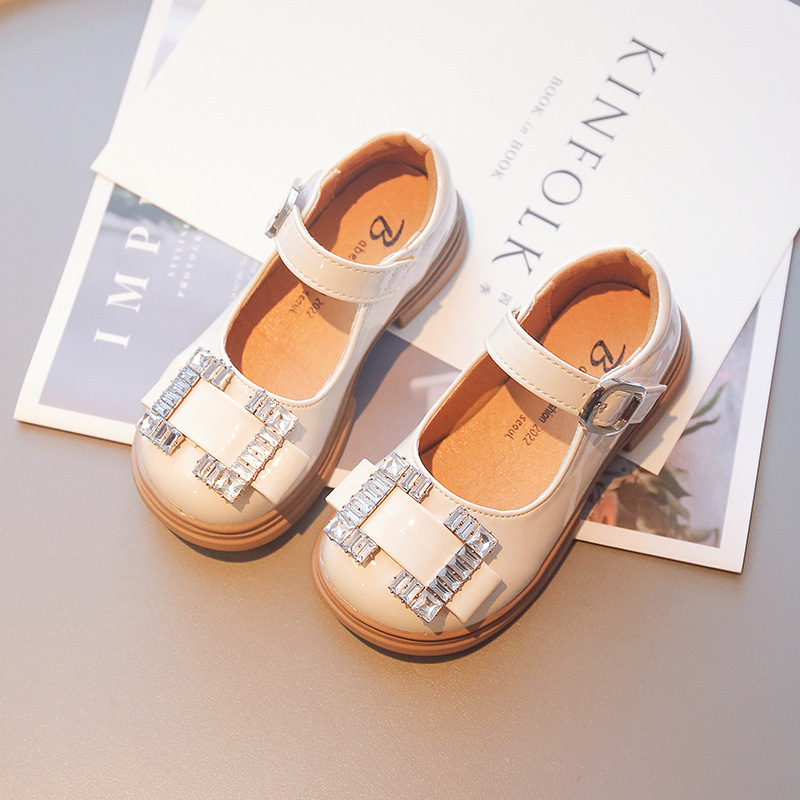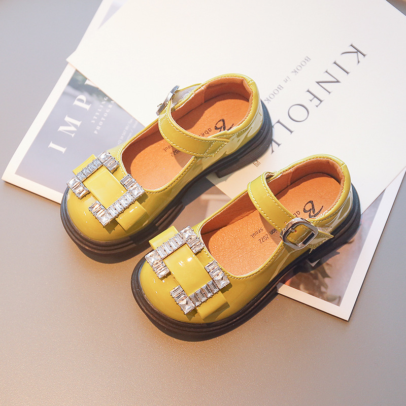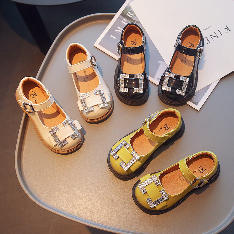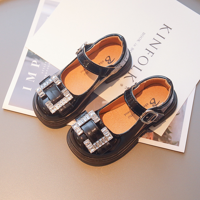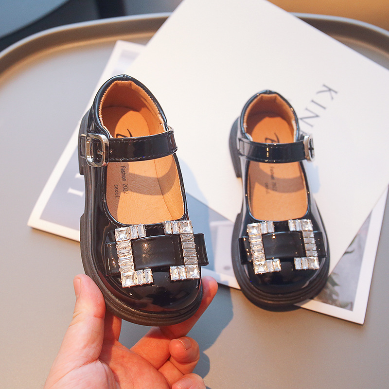 Детская обувь принцессы 2022 Ранняя осень Новые модные туфли для девочек со стразами и мелким ртом в европейском и американском стиле Яркие кожаные туфли на мягкой подошве