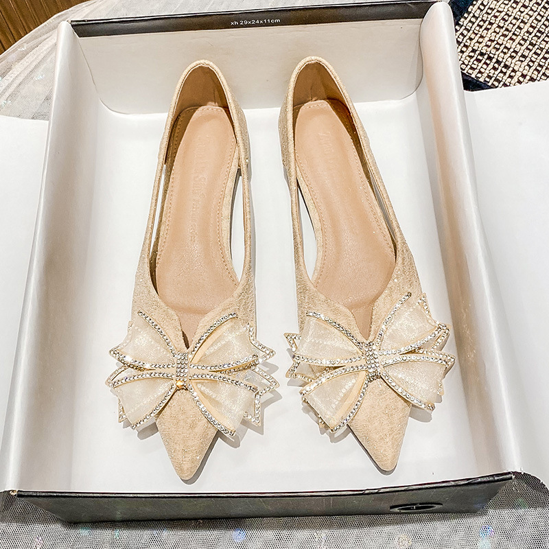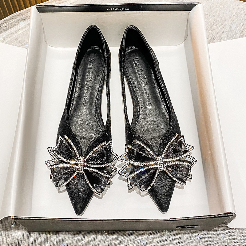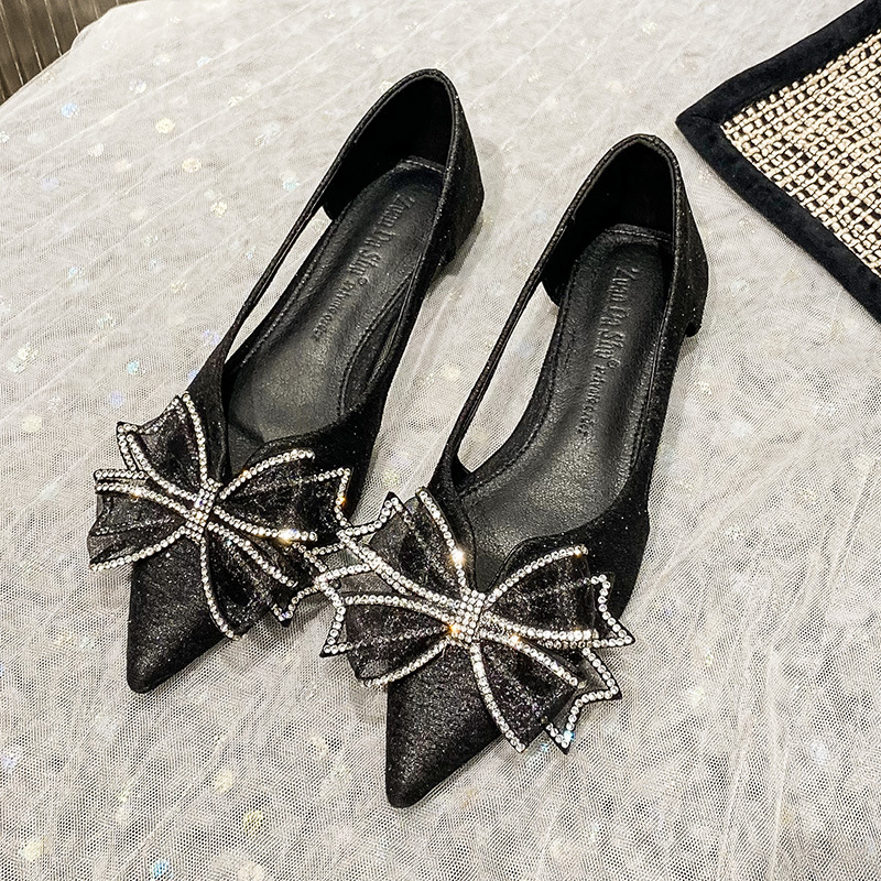 Женская обувь больших размеров, однослойная обувь с кружевным бантом, однослойная обувь с пустым мелким ртом и острым носком, однослойная обувь с кружевным бантом на массивном каблуке