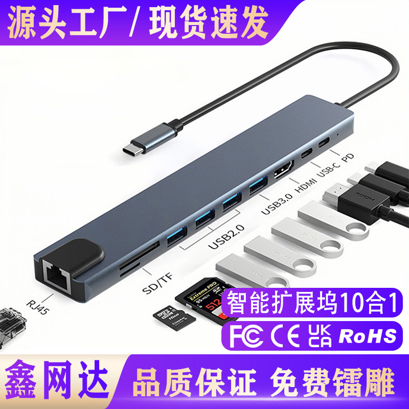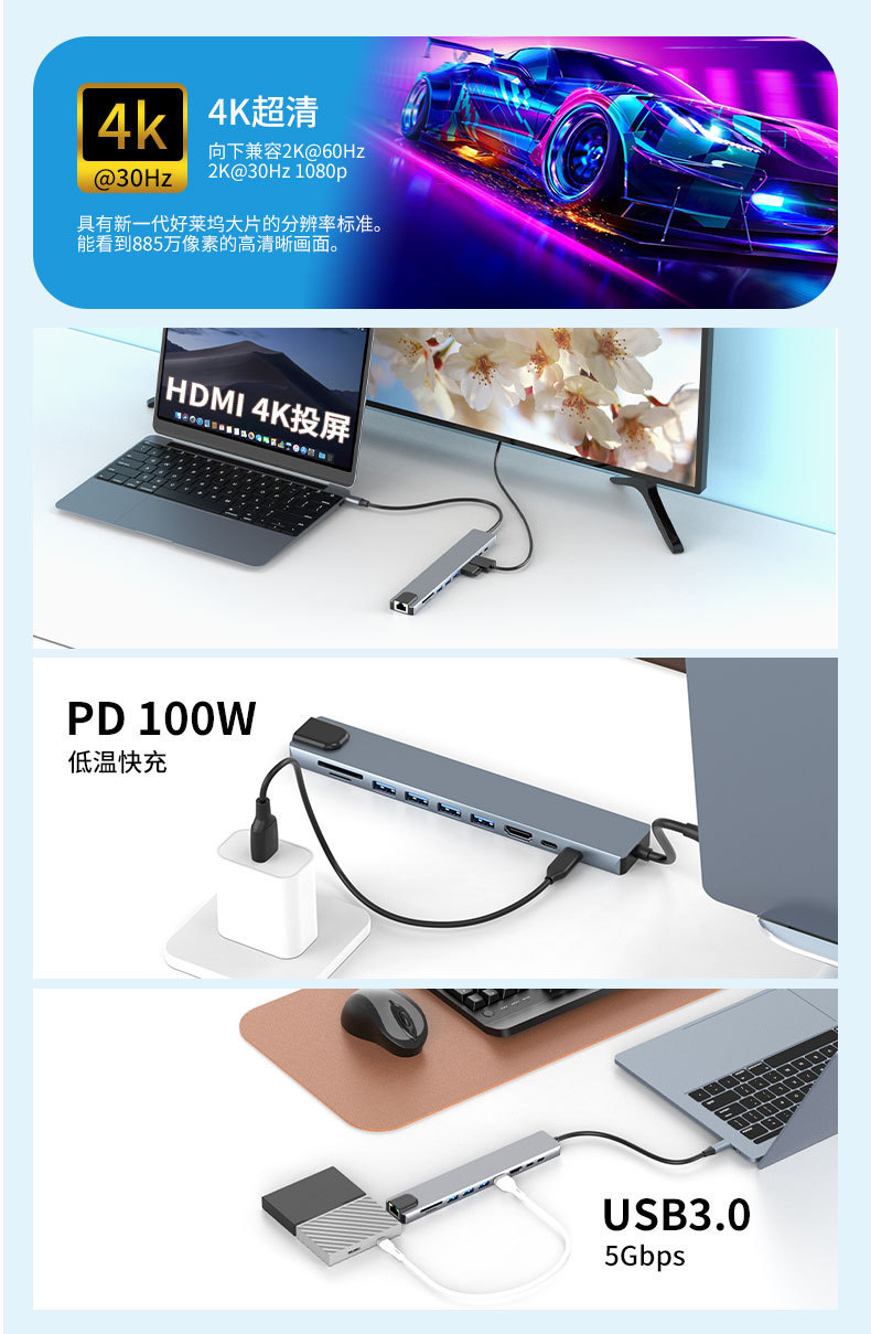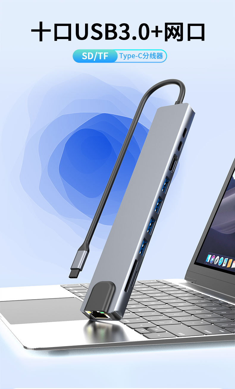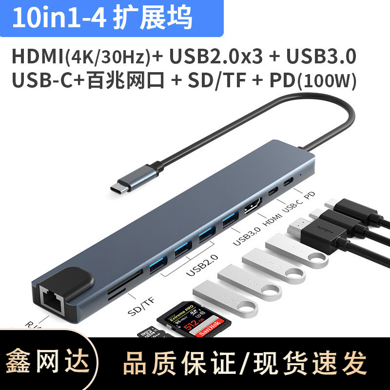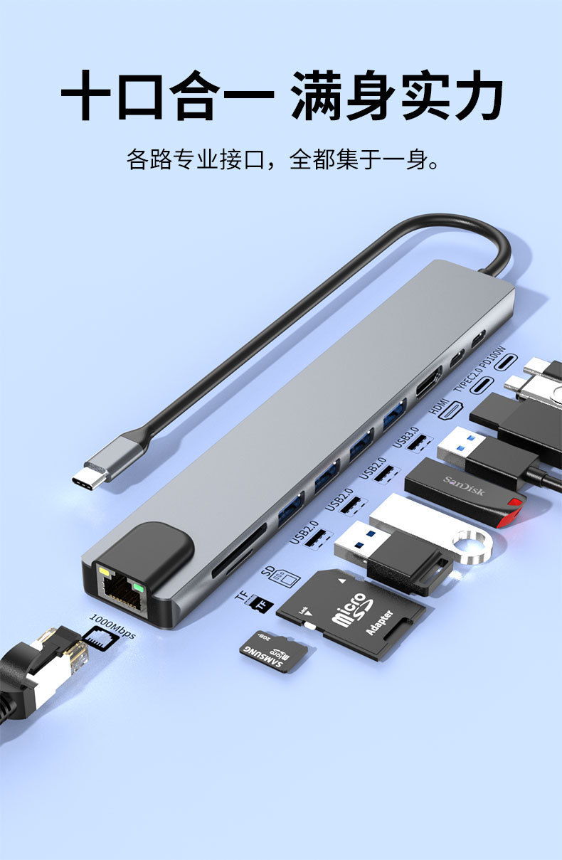 Многофункциональная док-станция 10-в-1: Type-C на HDMI 4K 30 Гц, USB 3.0, конвертер, кардридер SD/TF, PD
