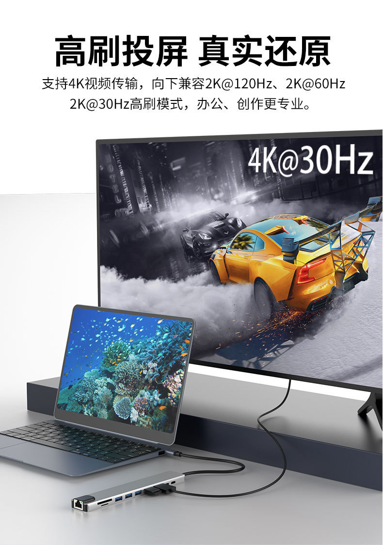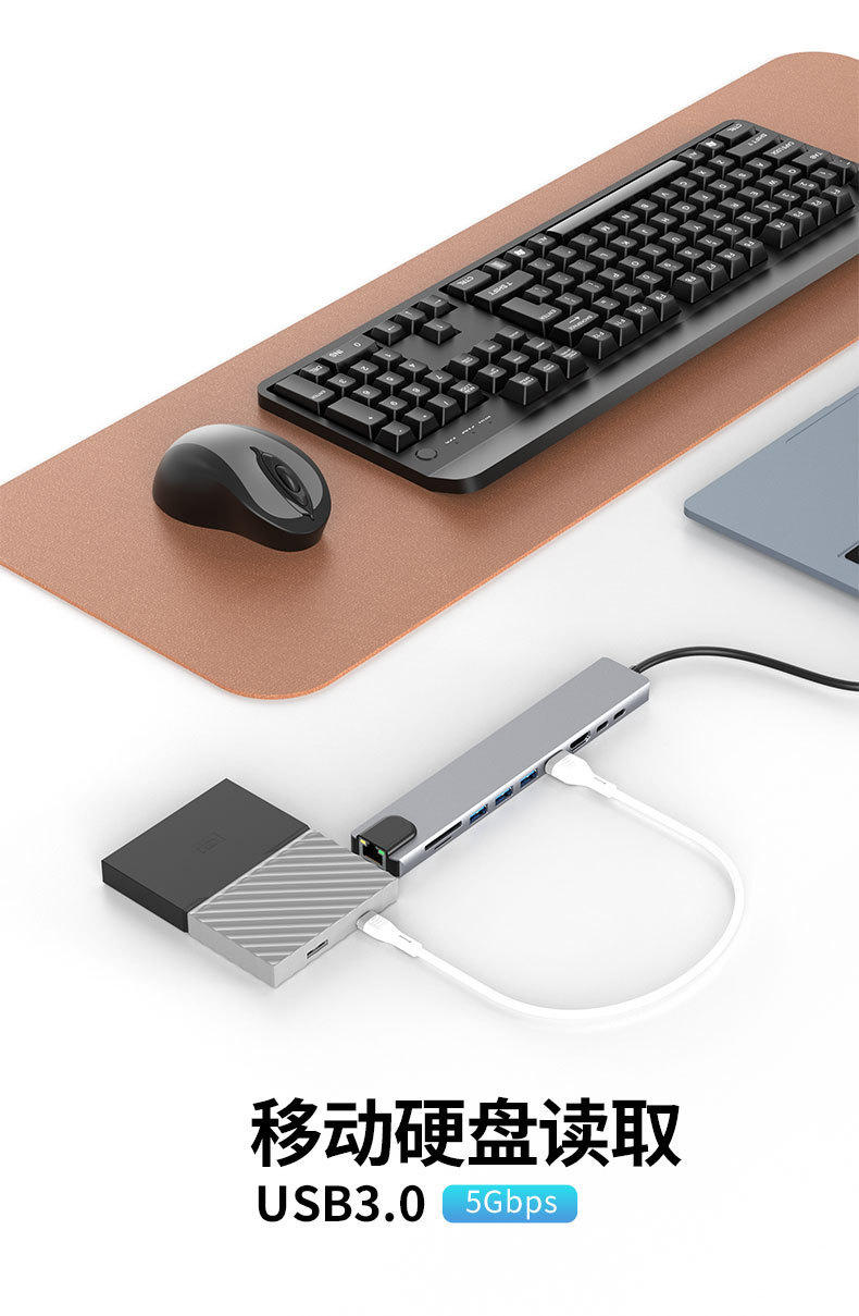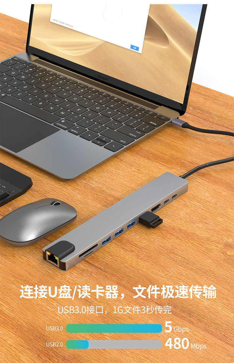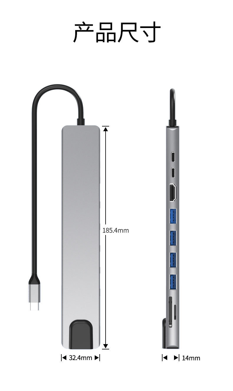 Многофункциональная док-станция 10-в-1: Type-C на HDMI 4K 30 Гц, USB 3.0, конвертер, кардридер SD/TF, PD