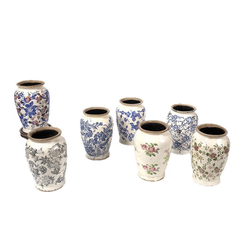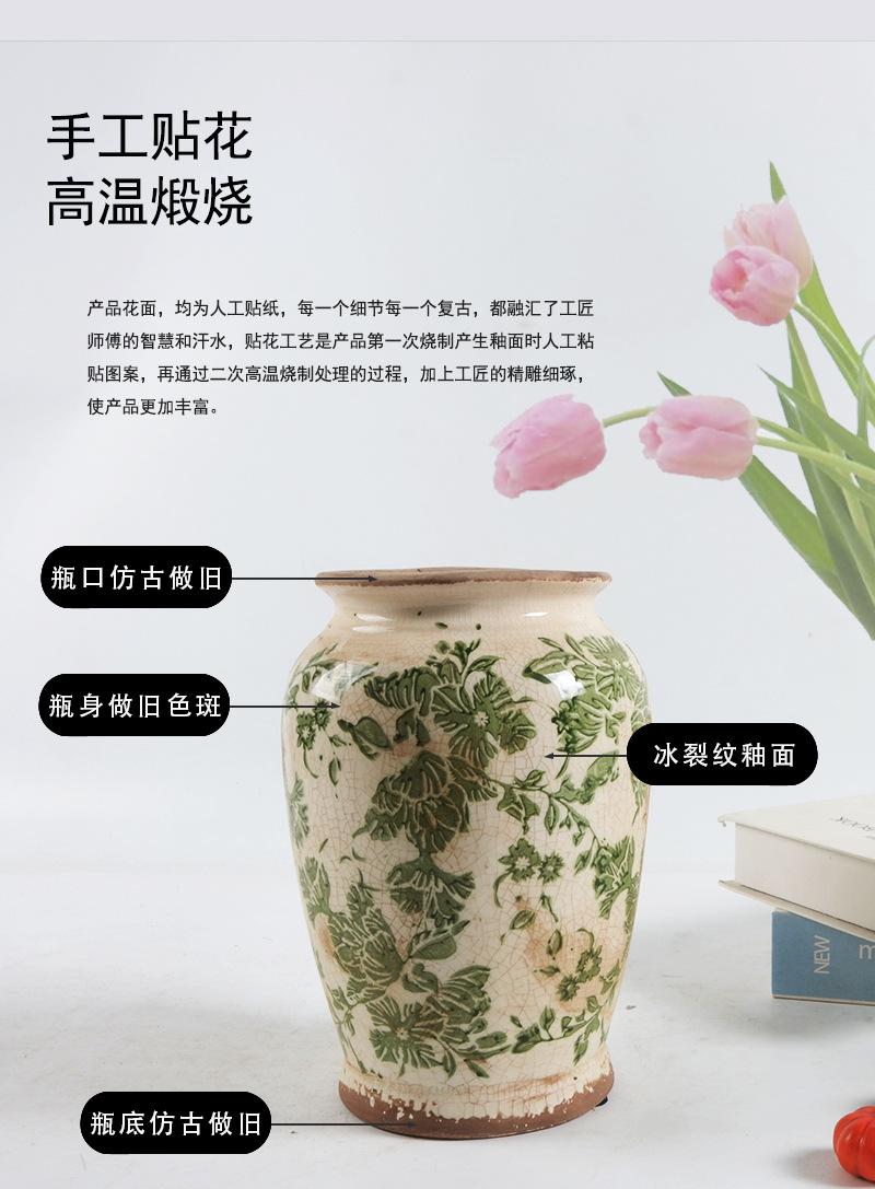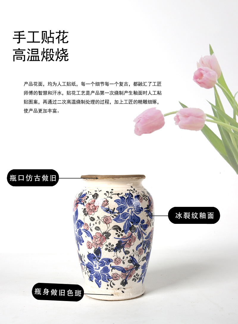 Винтажный старый китайский стиль ледяной трещины Сожженный цветочный горшок ваза для цветов Цветочная вставка керамическая глазурь китайское классическое мягкое платье