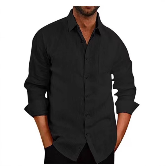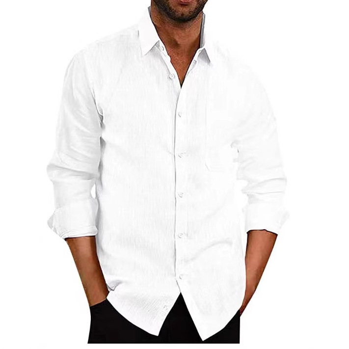 2024 Amazon ebay Горячая новая распродажа с лацканом сплошной цвет с длинными рукавами пуговицы мужская льняная рубашка