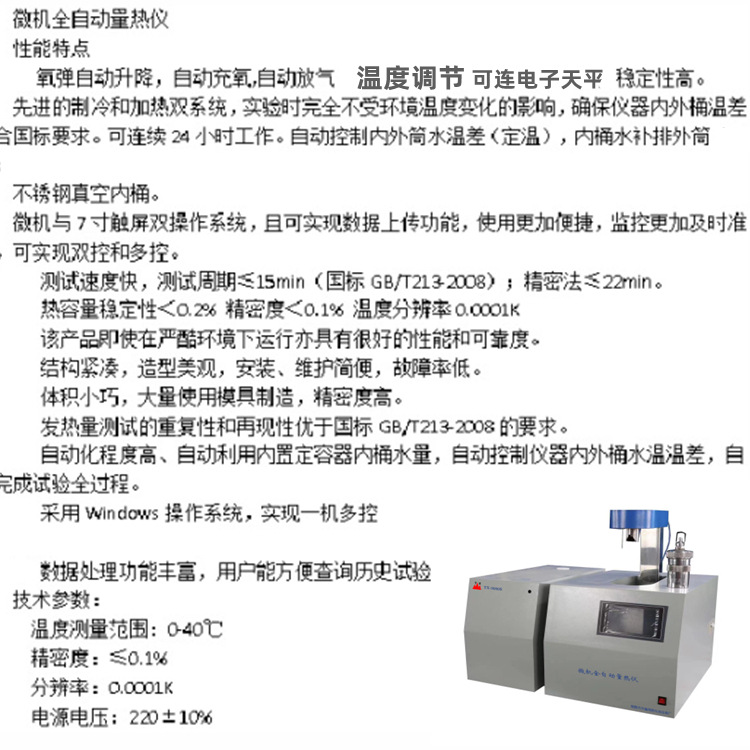 智能量热仪采用高级单片微机系统控制,自动实现搅拌,点火,数据采集和处理,数据保存,显示仪器状态,声响提示或报警,打印输出测定结果。
