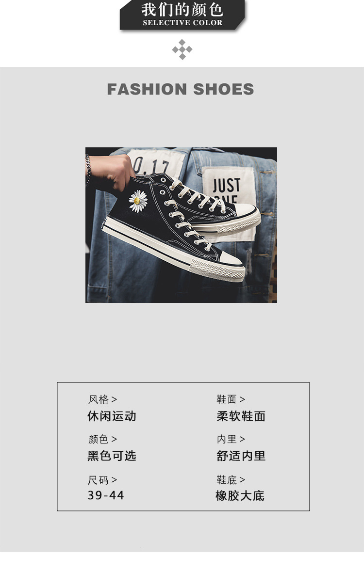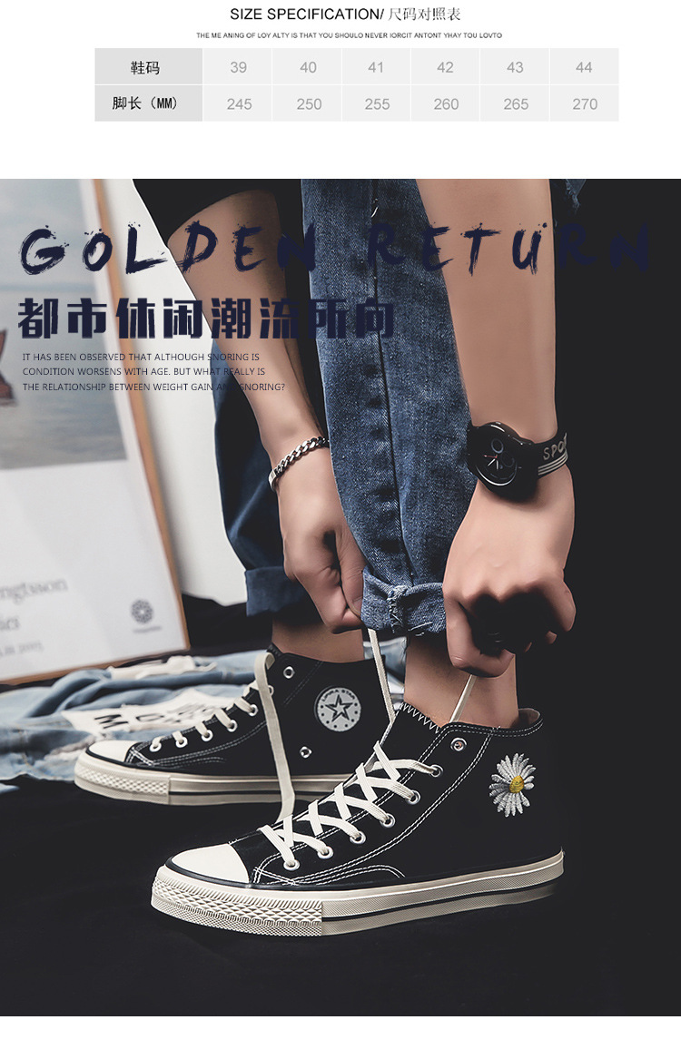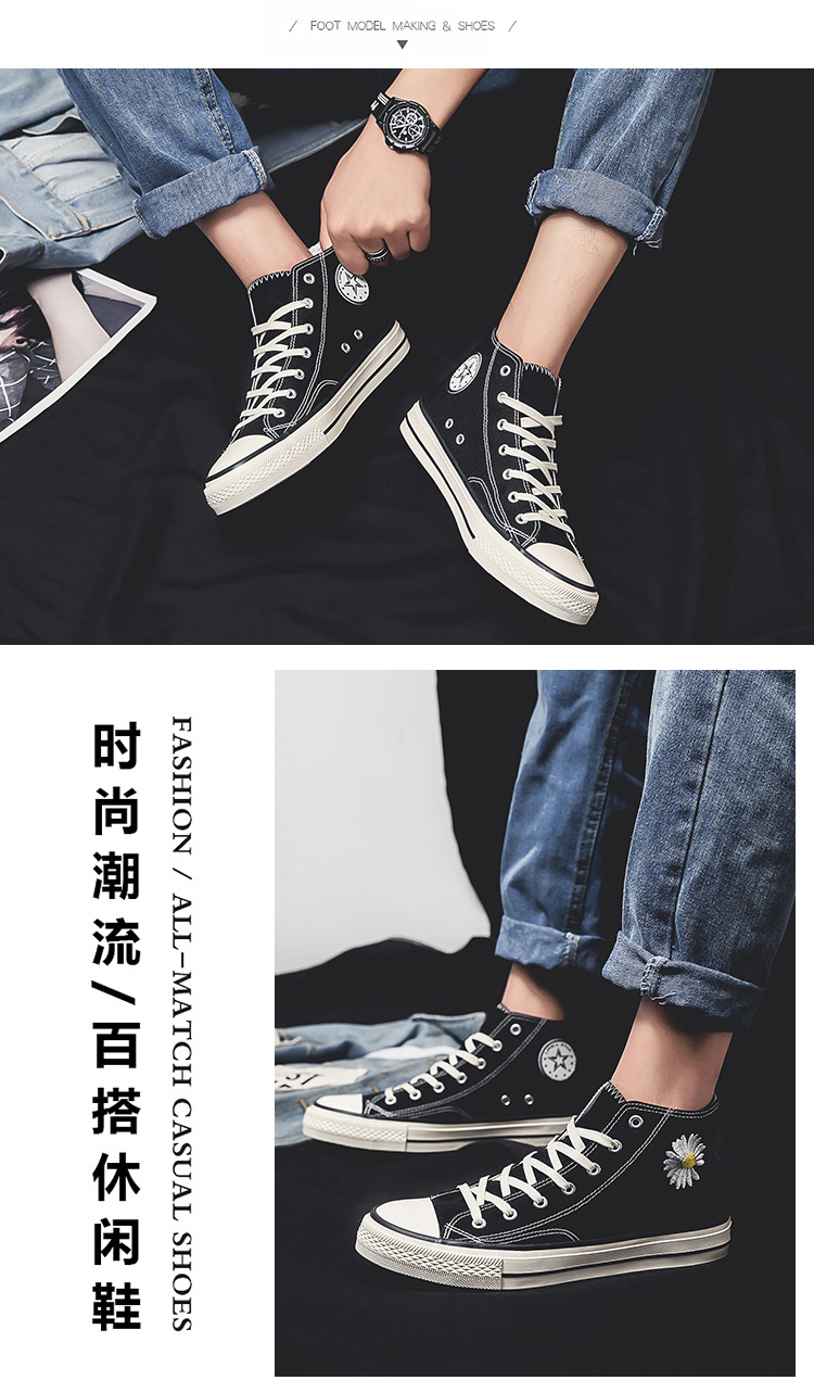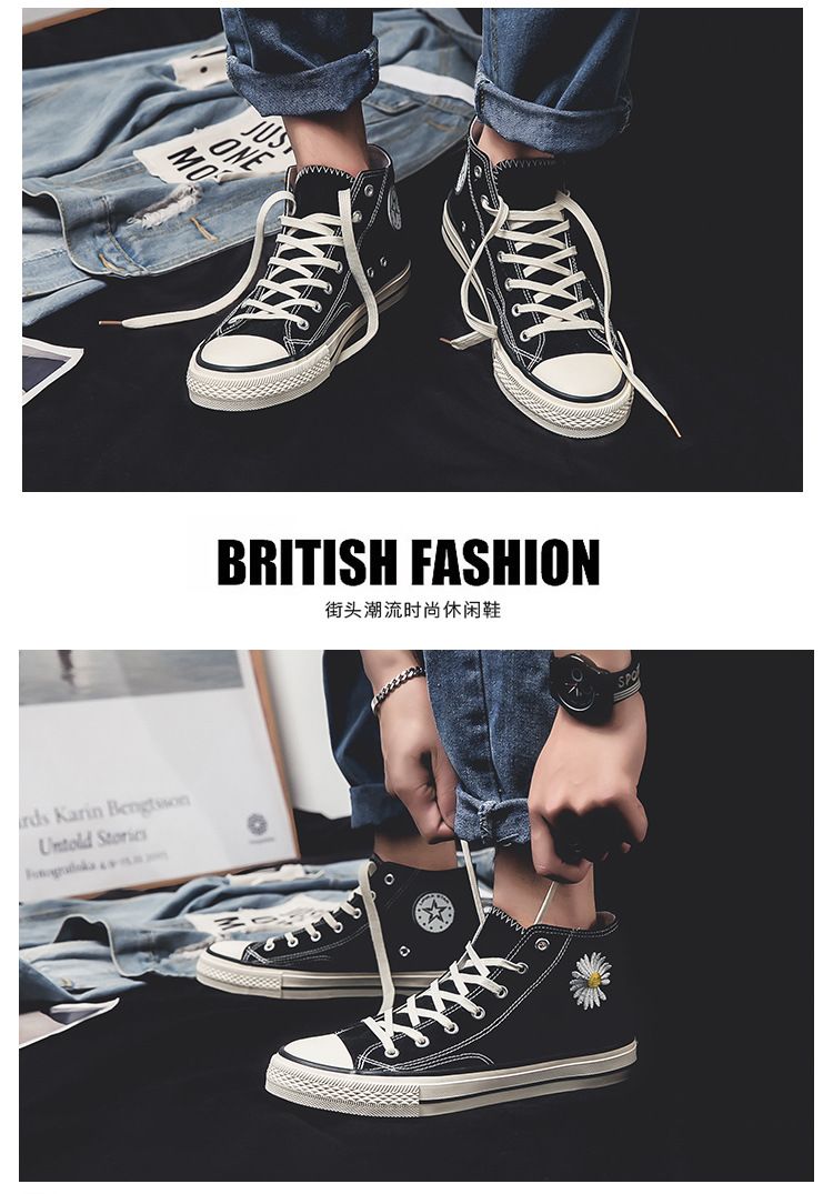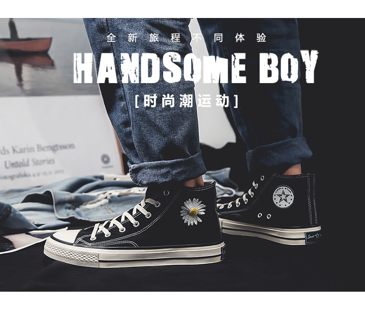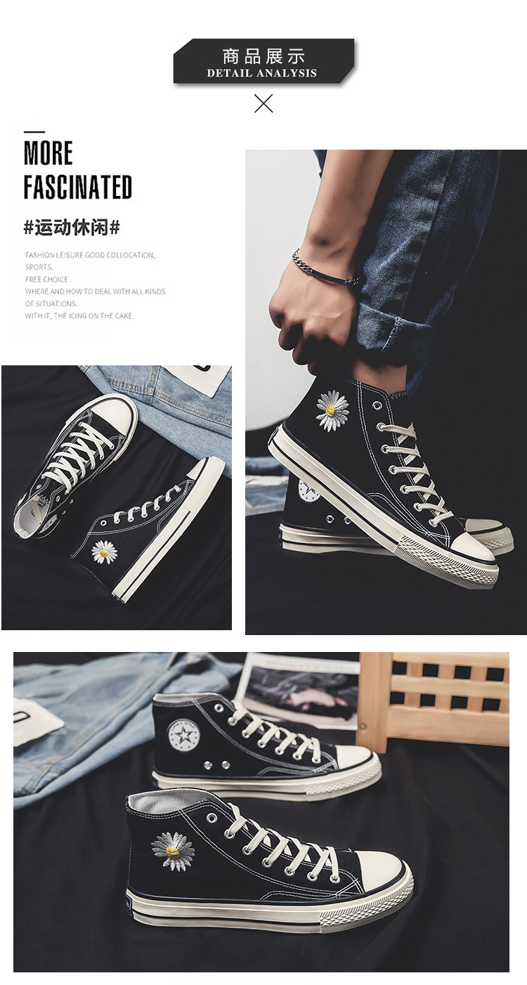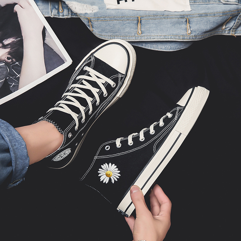Весенне-летняя новая обувь 2022 года для пар, парусиновые туфли с высоким берцем и ромашками в Корейском стиле, мужские и женские модные студенческие кроссовки