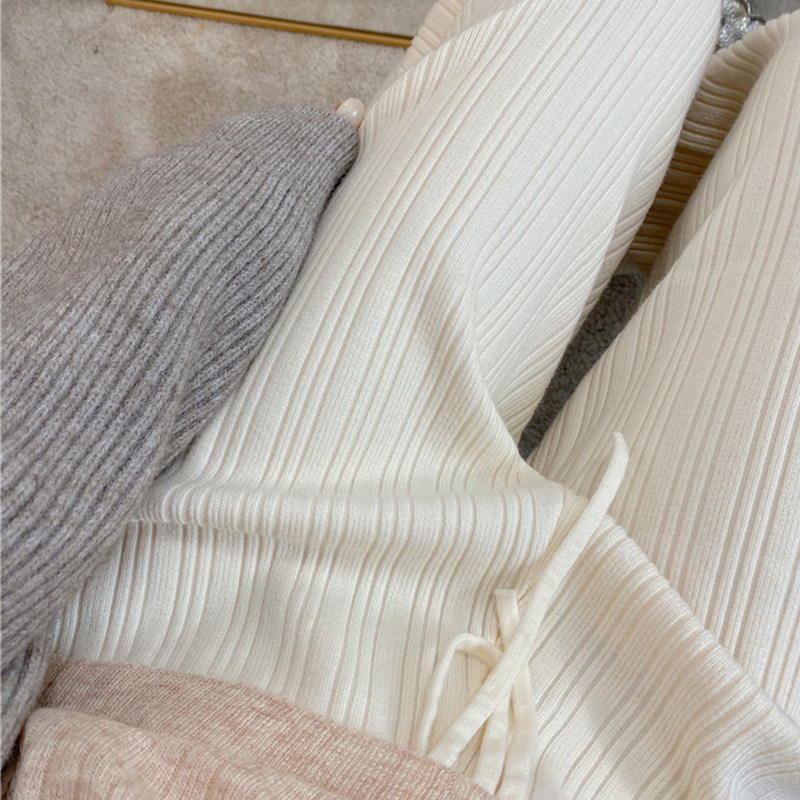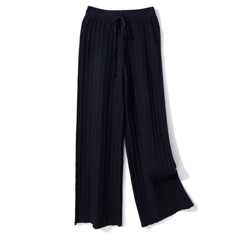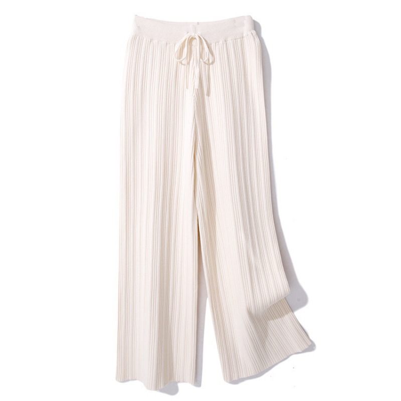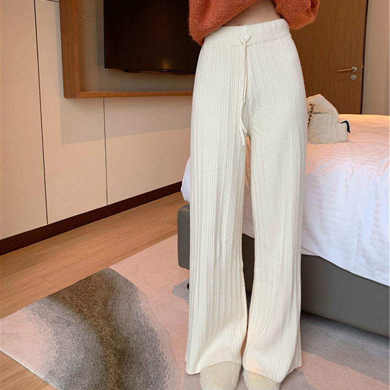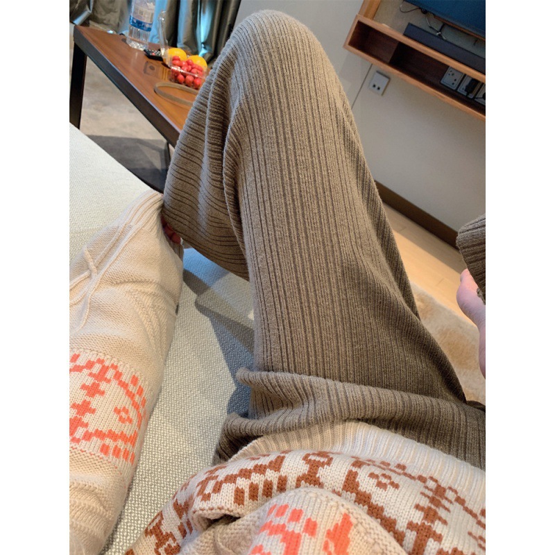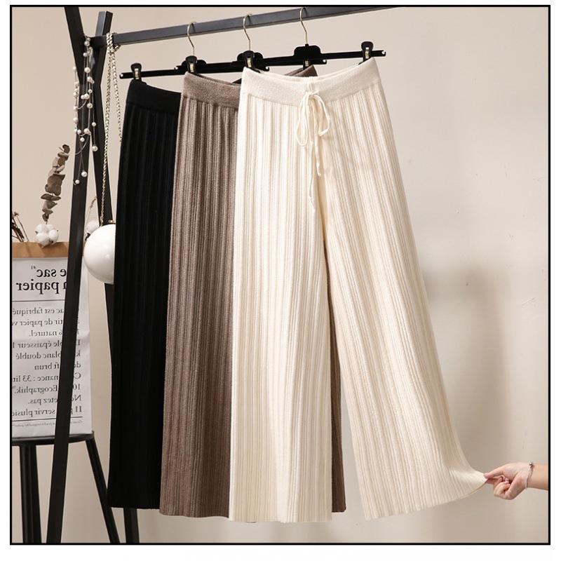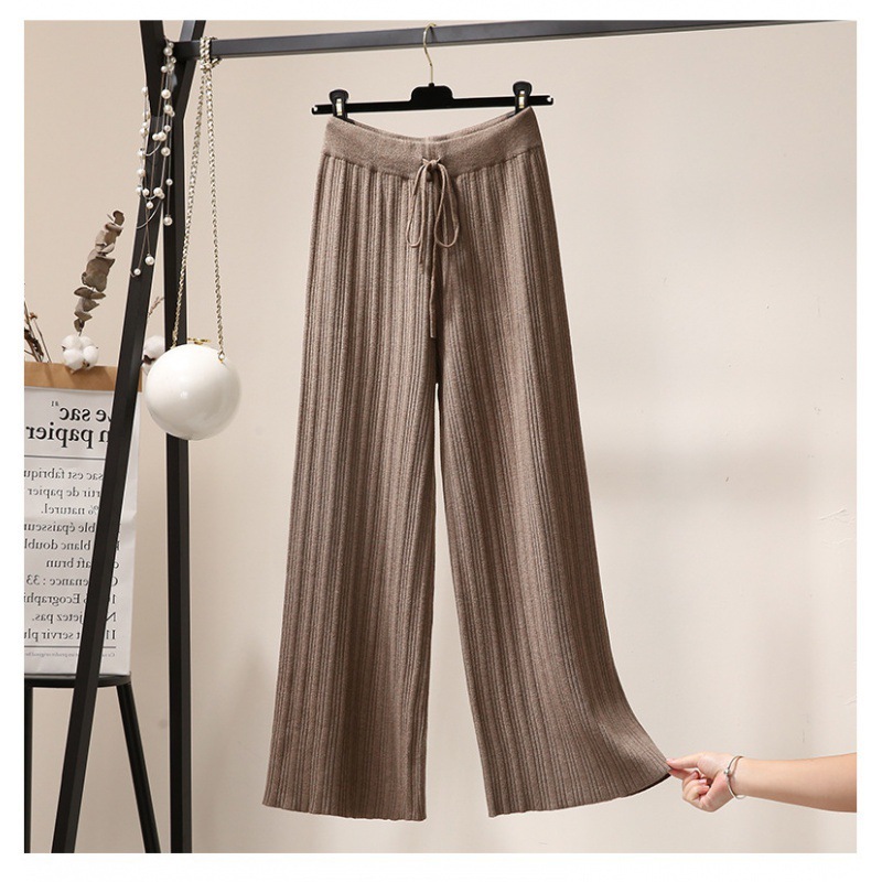 Осенние Новые Вязаные широкие брюки женские швабры с высокой талией Прямые свободные большие размеры тонкие вязаные длинные брюки утолщенные