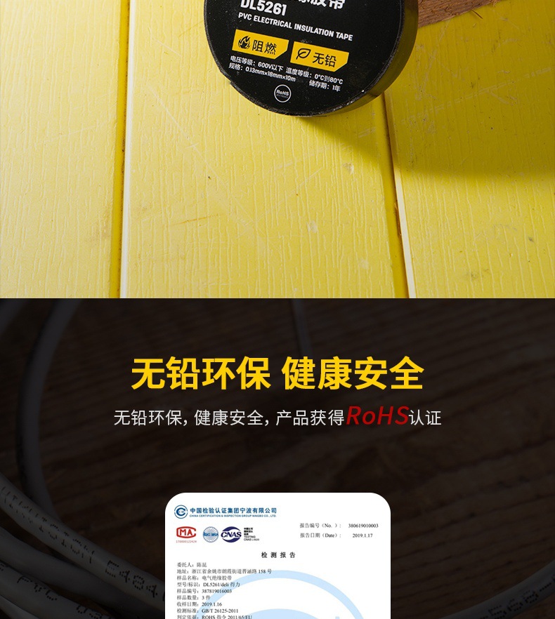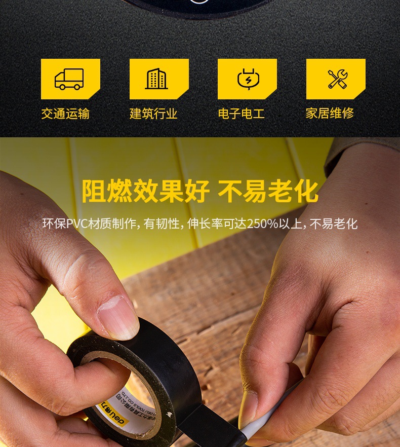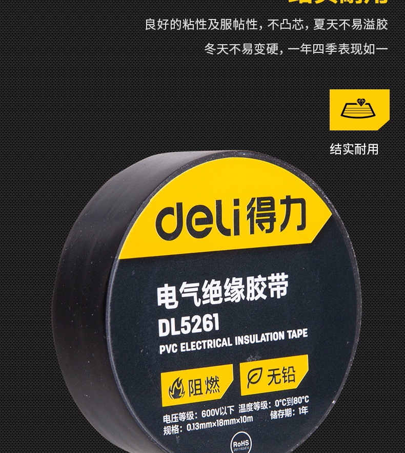 Мощный инструмент DL5261 электрическая лента изоляционная ПВХ водонепроницаемая проволочная лента черная 0,13ммх18ммх10м