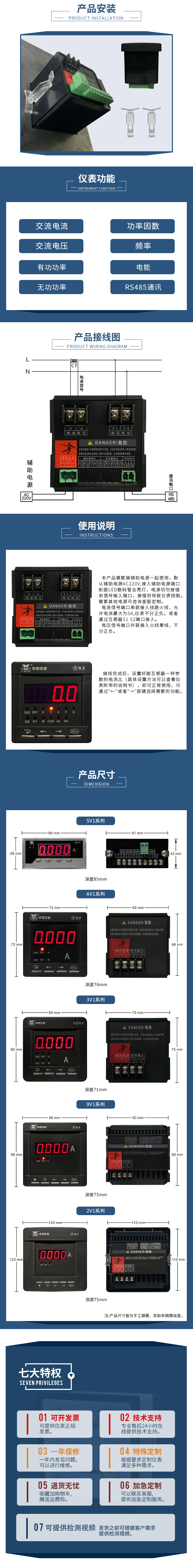 Интеллектуальный однофазный многофункциональный измеритель 72 тока 96 напряжения промышленной частоты Электрический градусный светодиодный цифровой трубчатый измеритель с цифровым дисплеем