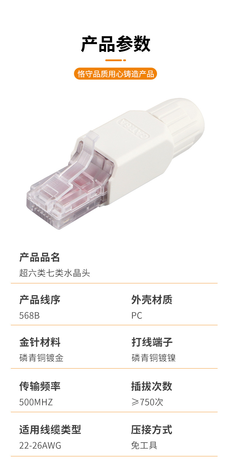 Источник заводской утолщенный позолоченный CAT6A, супер шесть семи видов хрустального разъема, неэкранированный штекер сетевого кабеля с хрустальной головкой