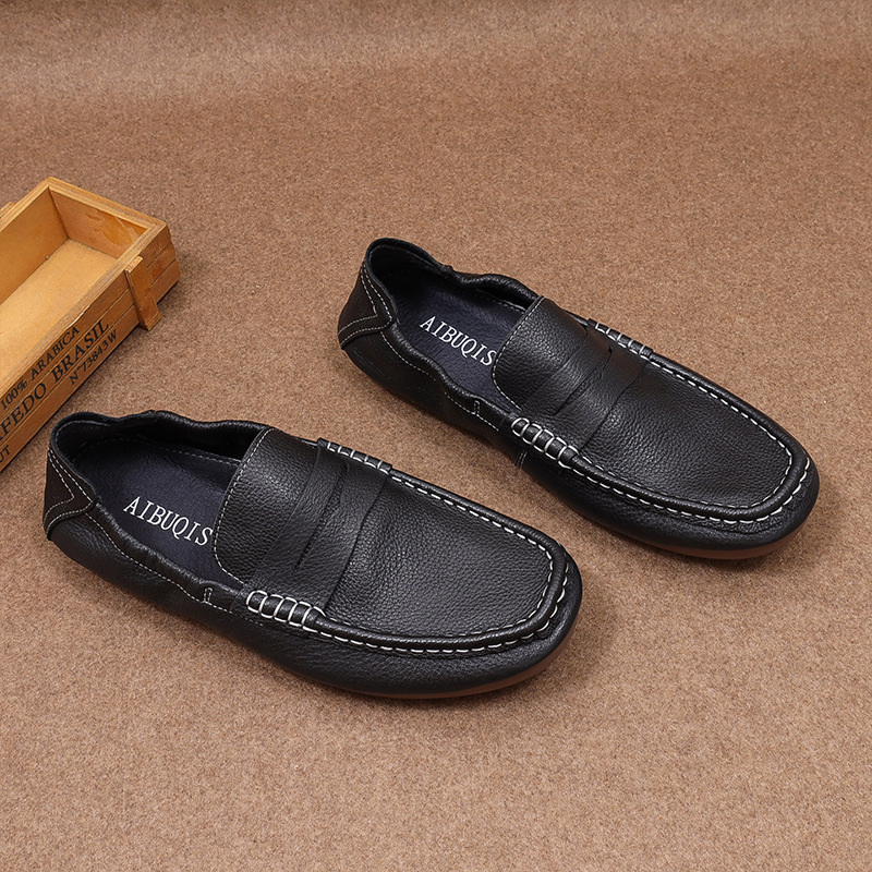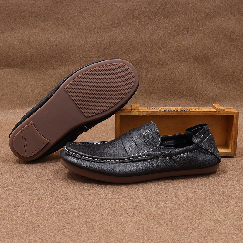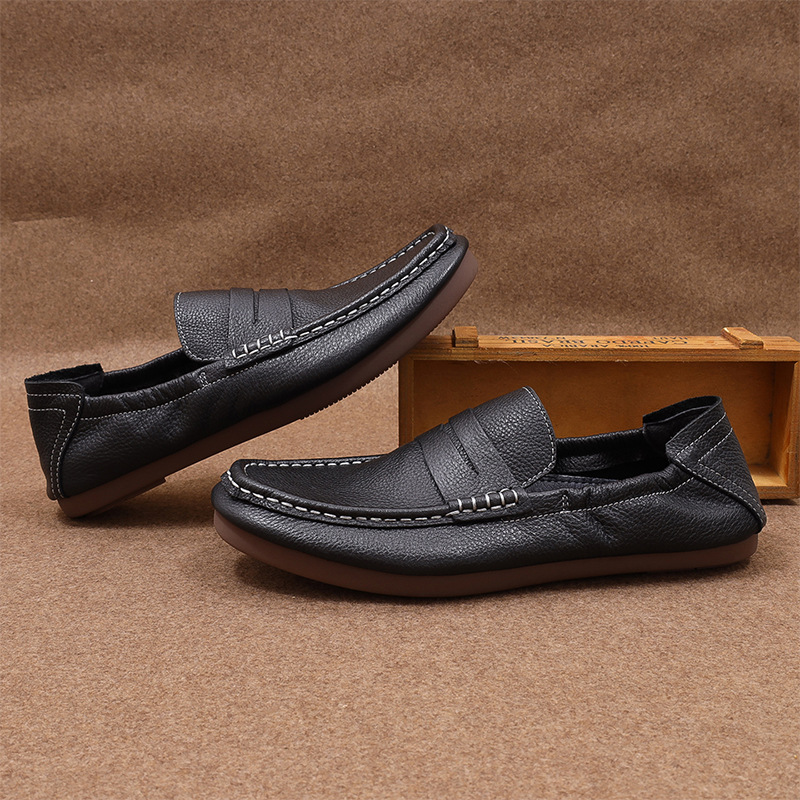 Летние мужские кожаные бобовые ботинки с круглой головой