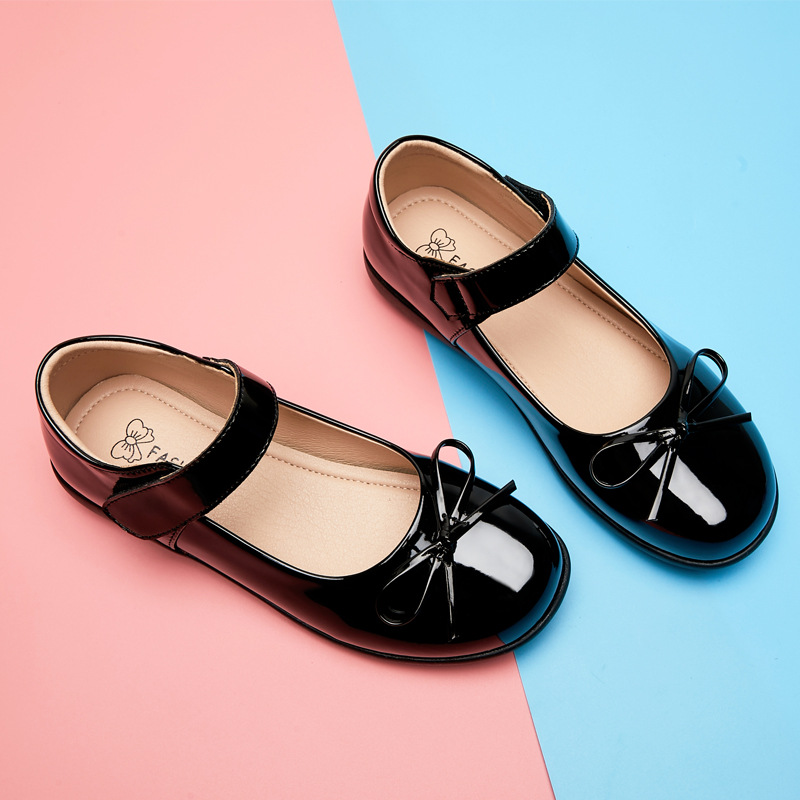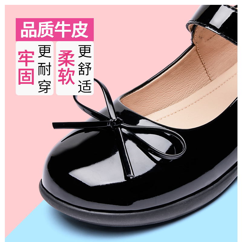 Детская кожаная обувь черная весна 2025 новая мягкая подошва