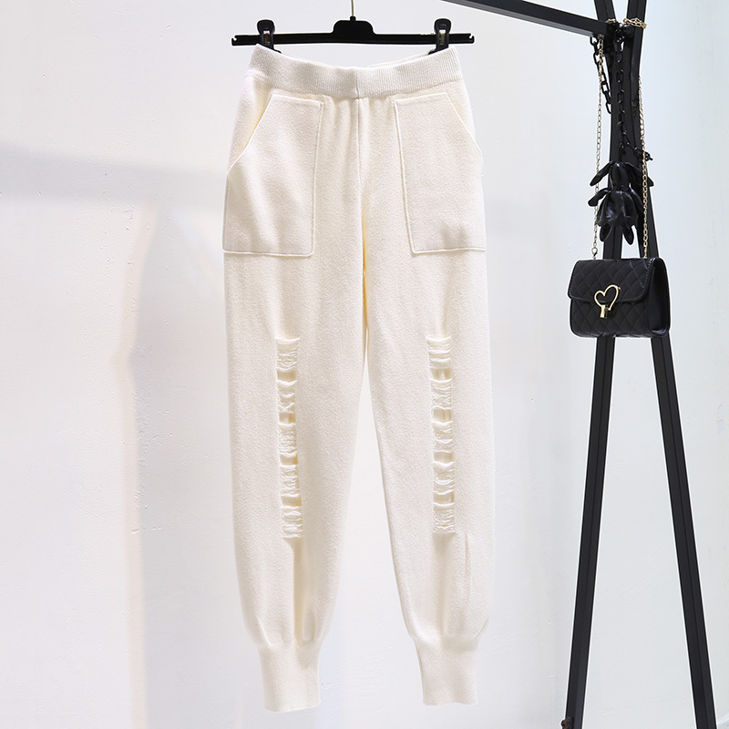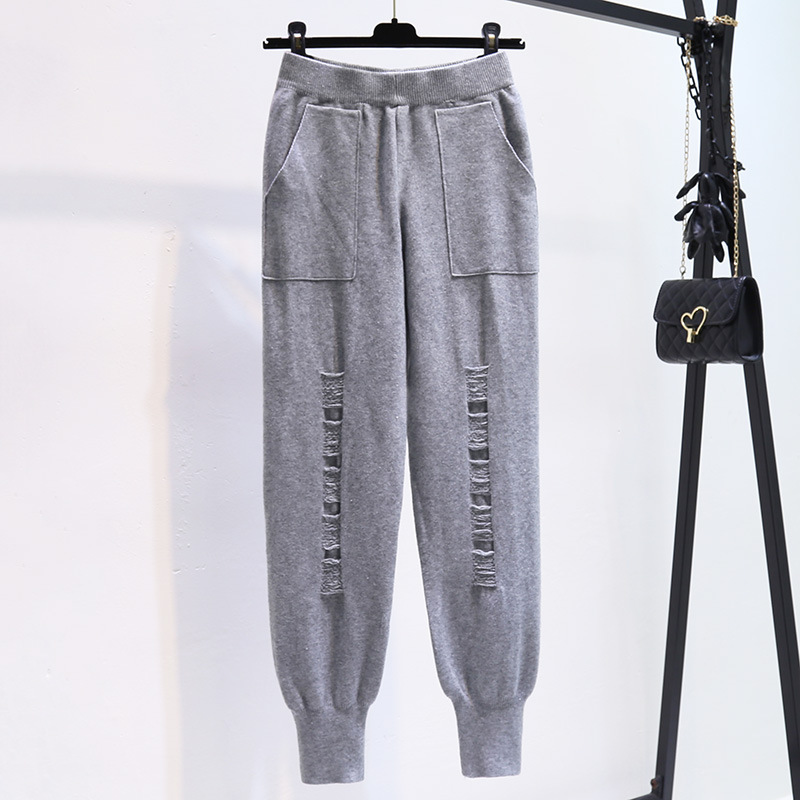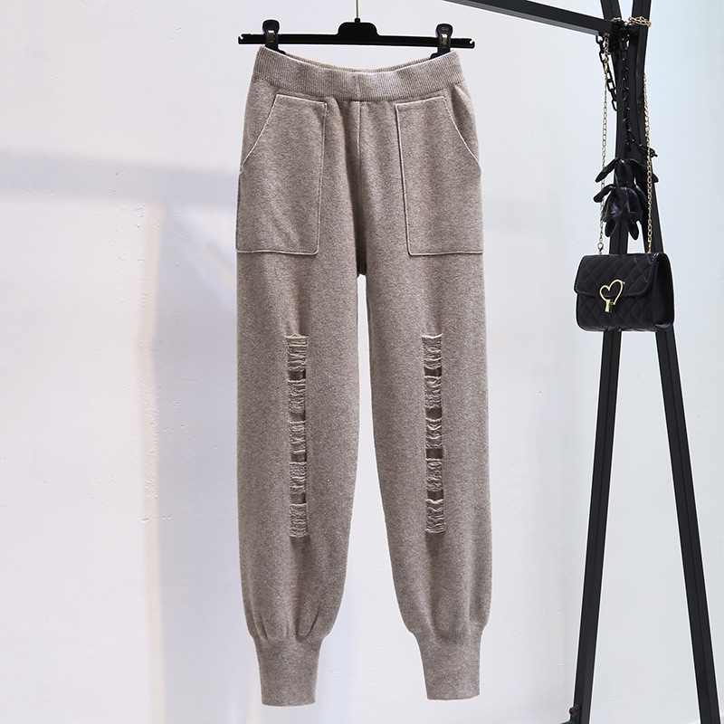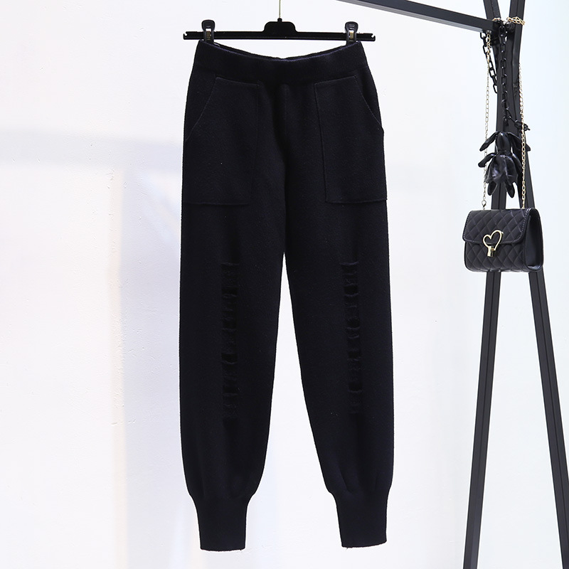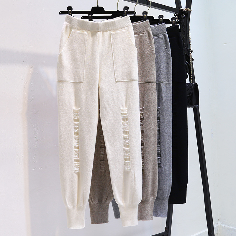 Осень-зима 2022, Новое поступление, износостойкие вязаные брюки-бабушки, женские облегающие свободные укороченные брюки с высокой талией и редькой