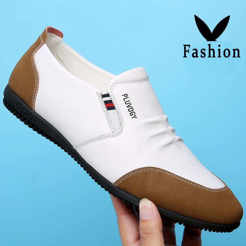 Мужская обувь, летняя новая кожаная обувь, мужская кожаная дышащая повседневная обувь, Корейская универсальная Молодежная обувь для вождения, обувь в горох с мягкой подошвой