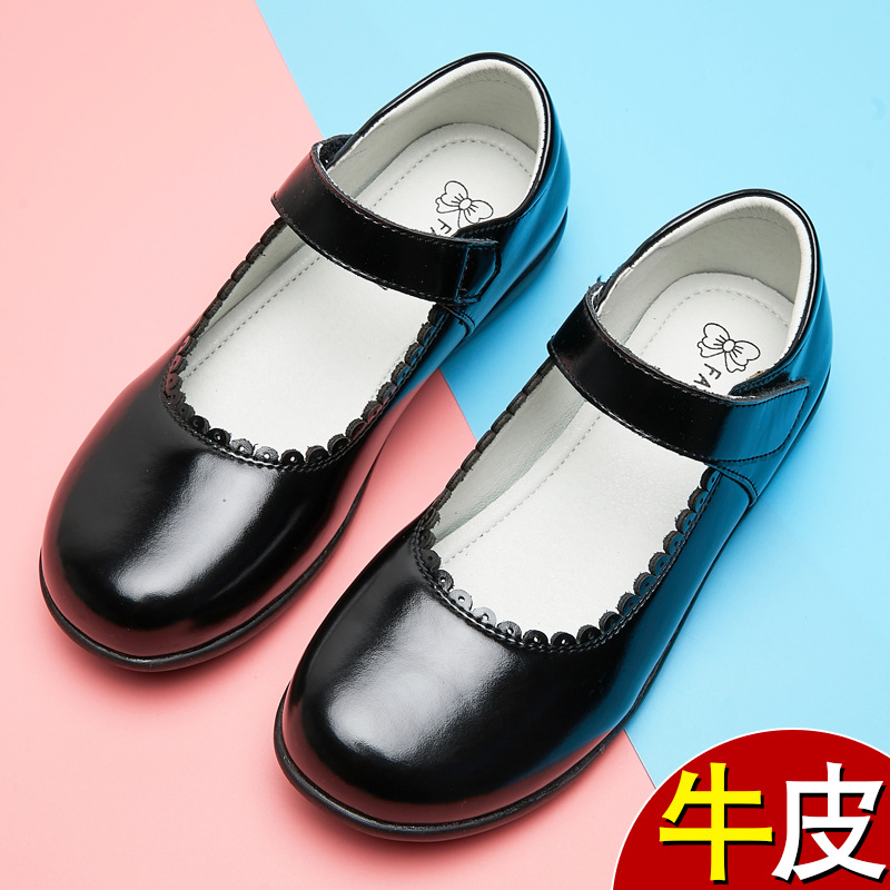 Детские кожаные туфли для девочек, туфли принцессы, праздничные туфли для выступлений, черные школьные туфли с мягкой подошвой для учениц, школьная обувь из Шэньчжэня, в стиле принцессы