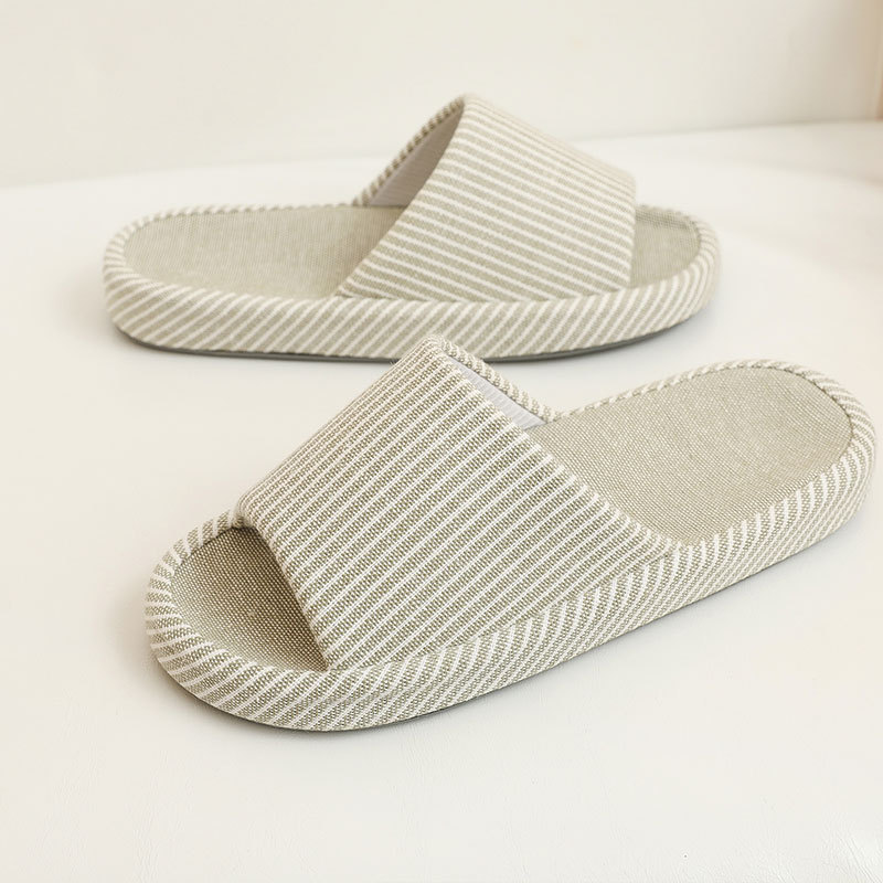 Льняные тапочки в японском стиле на толстой подошве, подходящие для любого сезона, бесшумные, нескользящие, впитывающие пот, дышащие домашние тапочки из хлопка и льна для женщин.