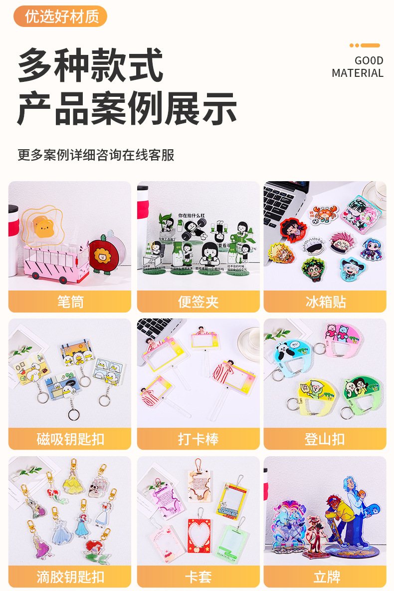 Консультация по настройке магнитов для холодильников, обслуживание клиентов, предоставление коммерческого предложения; Консультация по кастомизации брелоков, обслуживание клиентов, предоставление коммерческого предложения; Кастомизация акриловых стендов: Свяжитесь с клиентской службой для получения коммерческого предложения; Бренд Liusha: индивидуальная консультация, обслуживание клиентов, предоставление коммерческого предложения