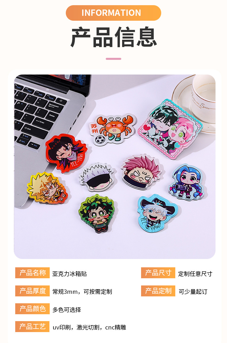 Акриловые магниты на холодильник, индивидуальные, креативные, для самостоятельного творчества, мультяшные, анимационные, эпоксидные магнитные наклейки, рекламные, культурно-креативные постеры, на заказ
