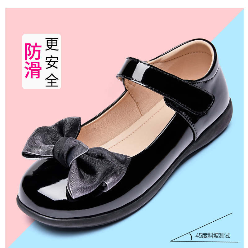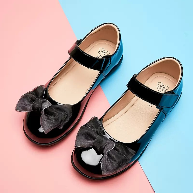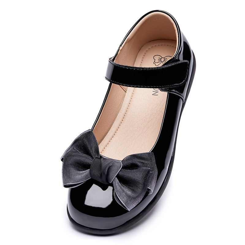 Детские кожаные туфли, черные, весна 2025, на мягкой подошве, для детей старшего возраста, школьные туфли для девочек, туфли для выступлений в стиле принцессы, в университетском стиле.