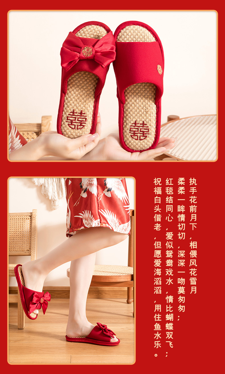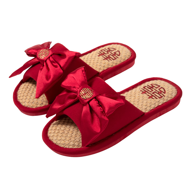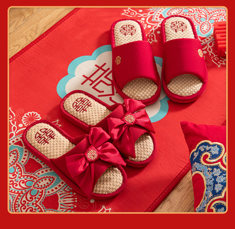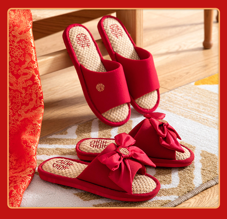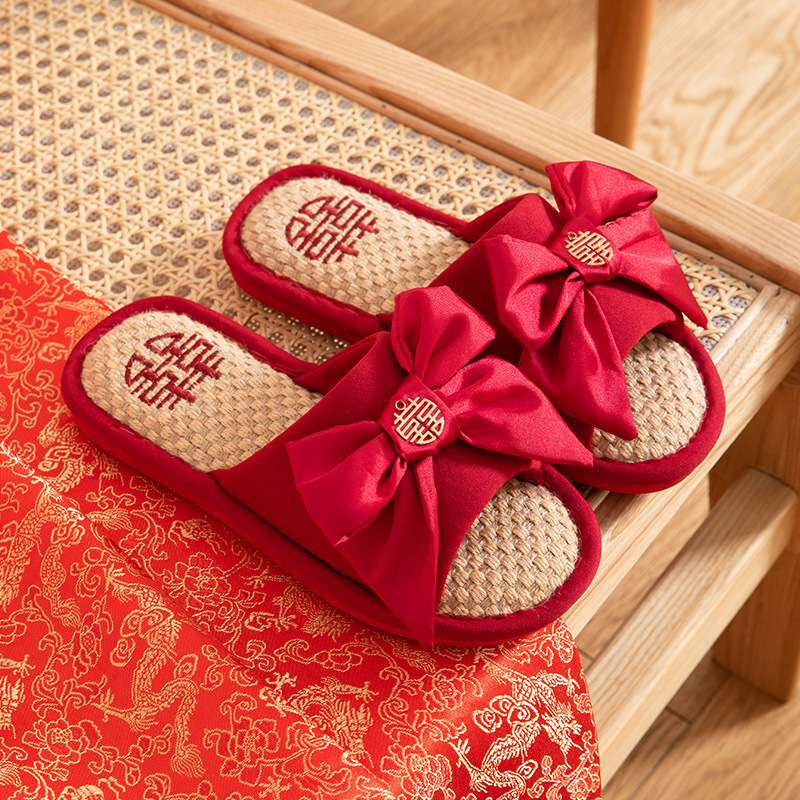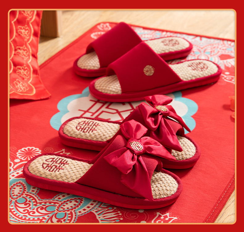 Милые свадебные тапочки, красные праздничные, всесезонные, льняные, для молодоженов, свадебный придан, оптом
