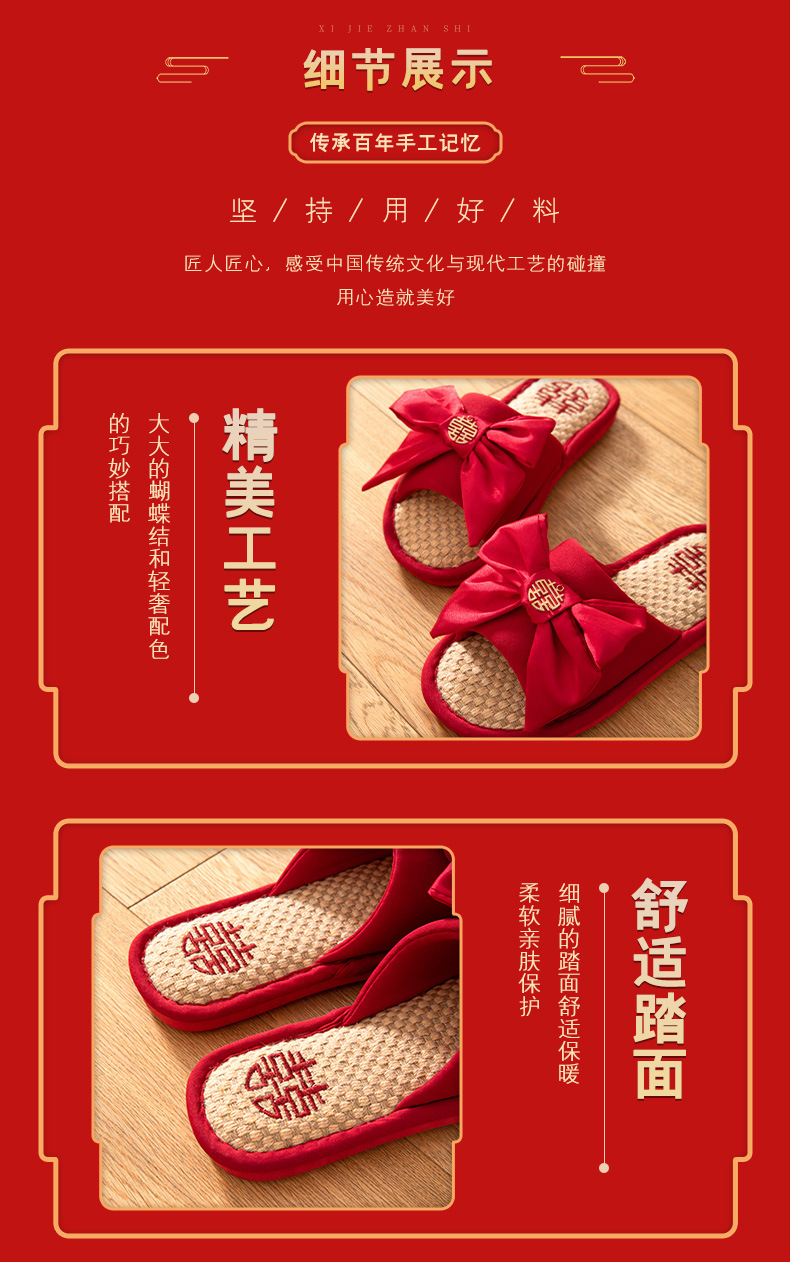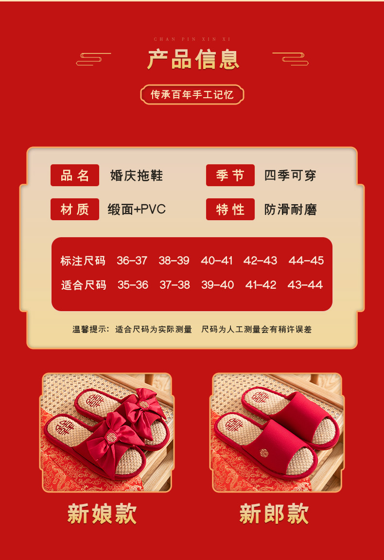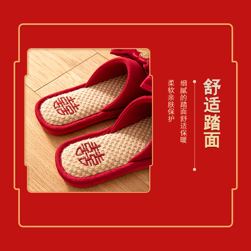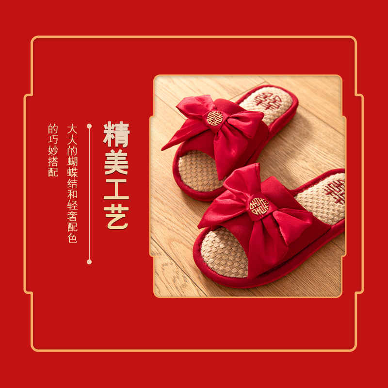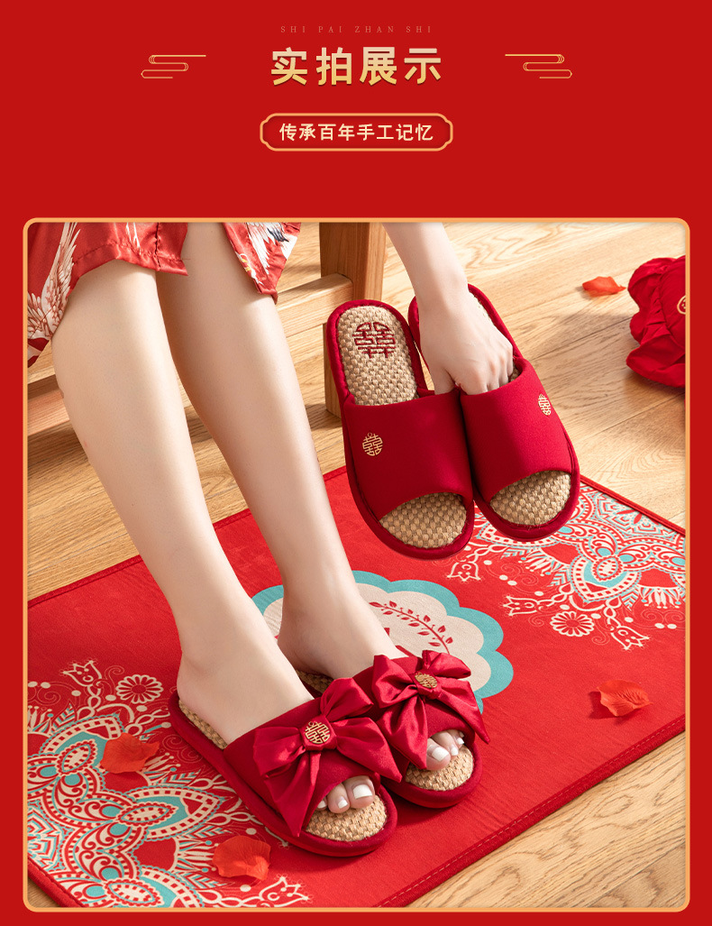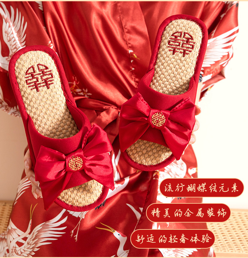 Милые свадебные тапочки, красные праздничные, всесезонные, льняные, для молодоженов, свадебный придан, оптом