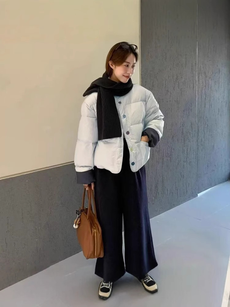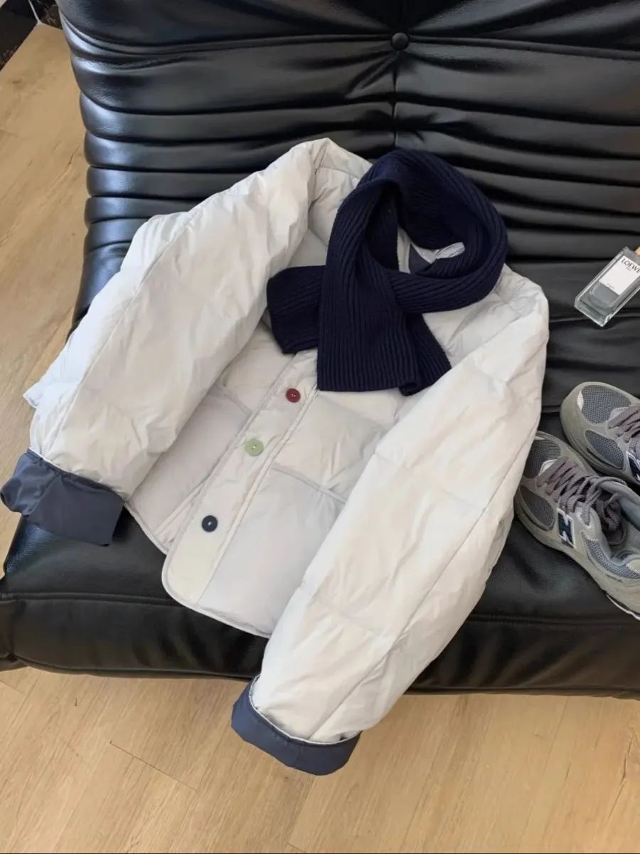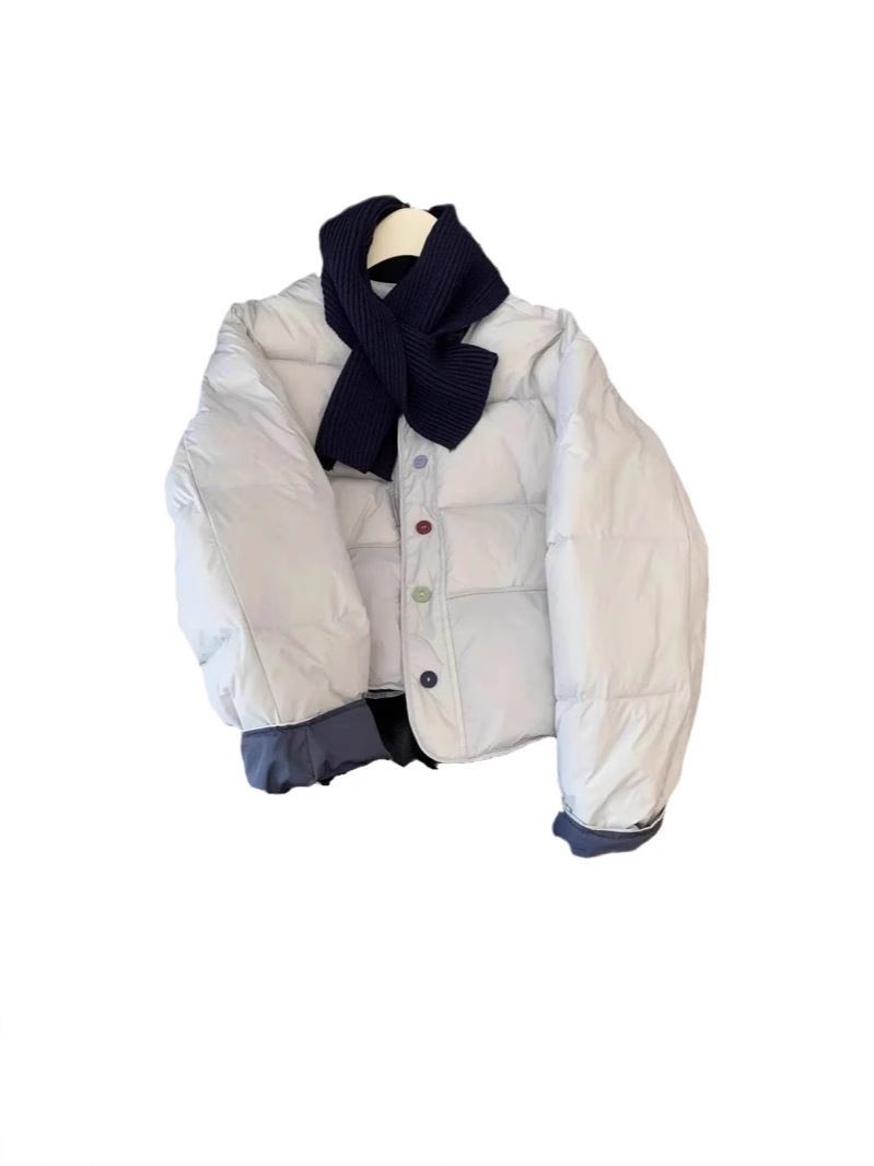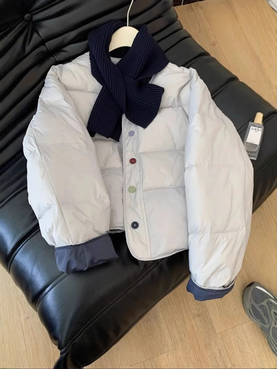 [Бесплатный шарф] Модная и стильная хлопковая одежда для женщин, новая короткая модель свободного зимнего пальто в корейском стиле с радужными пуговицами