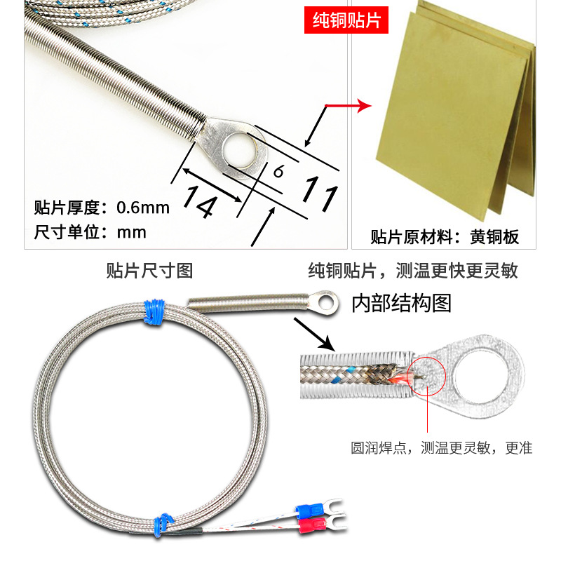 Патч тепловое сопротивление Термопара K-типа Датчик температуры Pt100 Прокладка торцевой грани холодного давления Датчик температуры носа