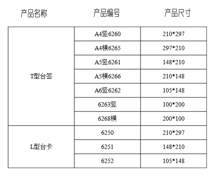 L-Тип Белый А4 вертикальный 6250(210*297 мм); L-образный белый A5 вертикальный 6251(148*210 мм); L-образный белый A6 вертикальный 6252(105*148 мм); L Тип Черный А4 вертикальный 6250(210*297 мм); L-образный черный A5 вертикальный 6251(148*210 мм); L-образный черный A6 вертикальный 6252(105*148 мм); Т-образная белая А4 Вертикальная 6260(210*297 мм); T-образный белый A5 вертикальный 6261(148*210 мм); T-образный белый A6 вертикальный 6262(105*148 мм); Т-образный белый 6263 вертикальный (100*200 мм); Т-образная черная А4 Вертикальная 6260(210*297 мм); Т-образный черный А5 вертикальный 6261(148*210 мм); T-образный черный A6 вертикальный 6262(105*148 мм); Т-образный черный 6263 вертикальный (100*200 мм); T-образный белый A4 горизонтальный 6265(297*210 мм); T-образный белый A5 горизонтальный 6266(210*148 мм); Т-образный белый 6268 горизонтальный (200*100 мм); T-образный черный A4 горизонтальный 6265(297*210 мм); T-образный черный A5 горизонтальный 6266(210*148 мм); Т-образный черный 6268 горизонтальный (200*100 мм); L-образный белый A4 горизонтальный 6255 (297*210ММ); L-образный белый A5 горизонтальный 6256 (210*148ММ); L-образный белый A6 горизонтальный 6257 (148*105 мм); L-образный черный A4 горизонтальный 6255 (297*210ММ); L-образный черный A5 горизонтальный 6256 (210*148 мм); L-образный черный A6 горизонтальный 6257 (148*105 мм)