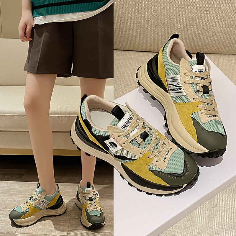 Корейский стиль, осень 2023, новинка, обувь с цветными блоками Forrest Gump, женская модная сетчатая толстая подошва, популярная в том же стиле, модная повседневная обувь