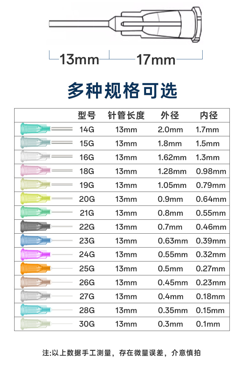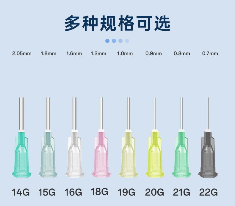 30г кремово-желтый 0,32мм* длина иглы 13мм; 28G зеленый 0,35мм* длина иглы 13мм; 27G светло-серый 0,4мм* длина иглы 13мм; 26G светло-коричневый 0,45мм* длина иглы 13мм; 25G оранжевый 0,5мм* длина иглы 13мм; 24G фиолетовый 0,55 мм* длина иглы 13 мм; 23 г синий 0,6 мм * длина иглы 13 мм; 22G черный 0,7мм* длина иглы 13мм; 21G зеленый 0,8мм* длина иглы 13мм; 20 г желтый 0,9 мм * длина иглы 13 мм; 19G кремово-желтый 1,0мм* длина иглы 13мм; 18 г розовый 1,2 мм * длина иглы 13 мм; 16G белый 1,6мм* длина иглы 13мм; 15 г темно-синий 1,8 мм * длина иглы 13 мм; 14G зеленый 2,0мм* длина иглы 18мм; 14G зеленый 2,0мм* длина иглы 13мм; Белая заглушка с наконечником