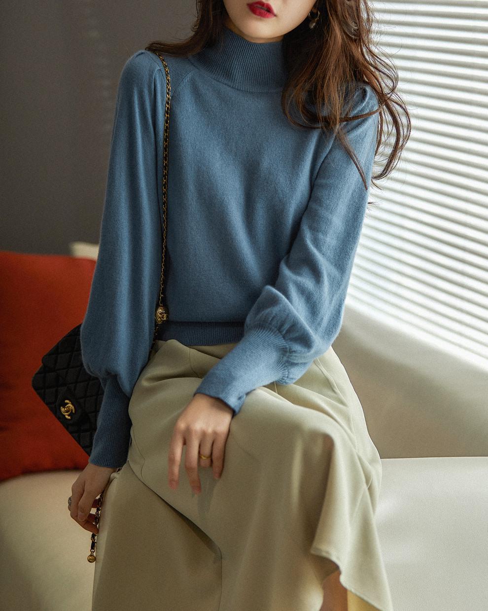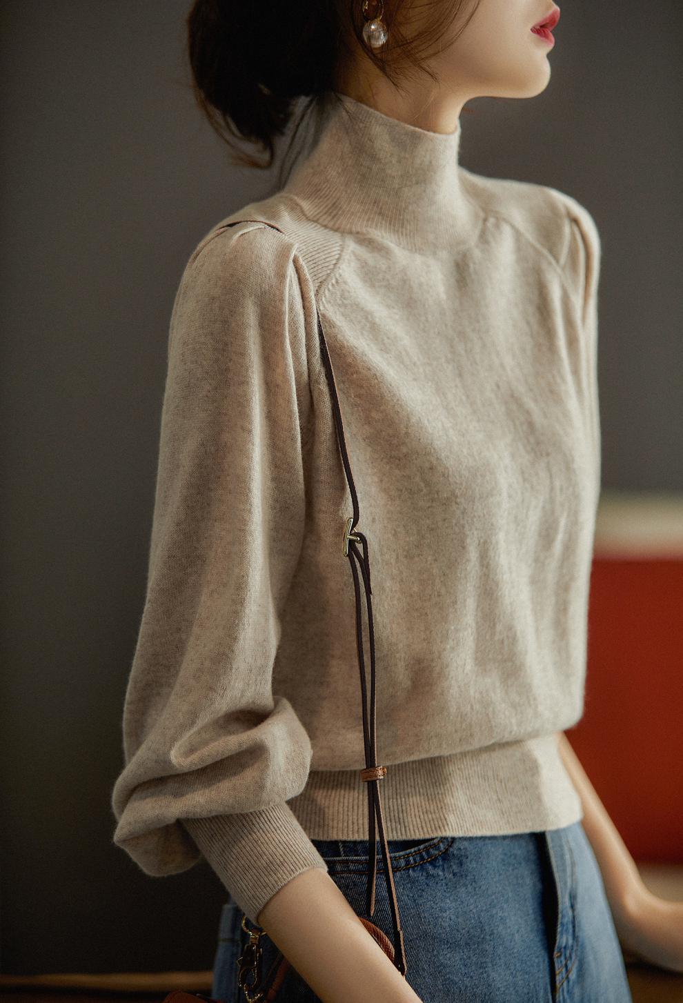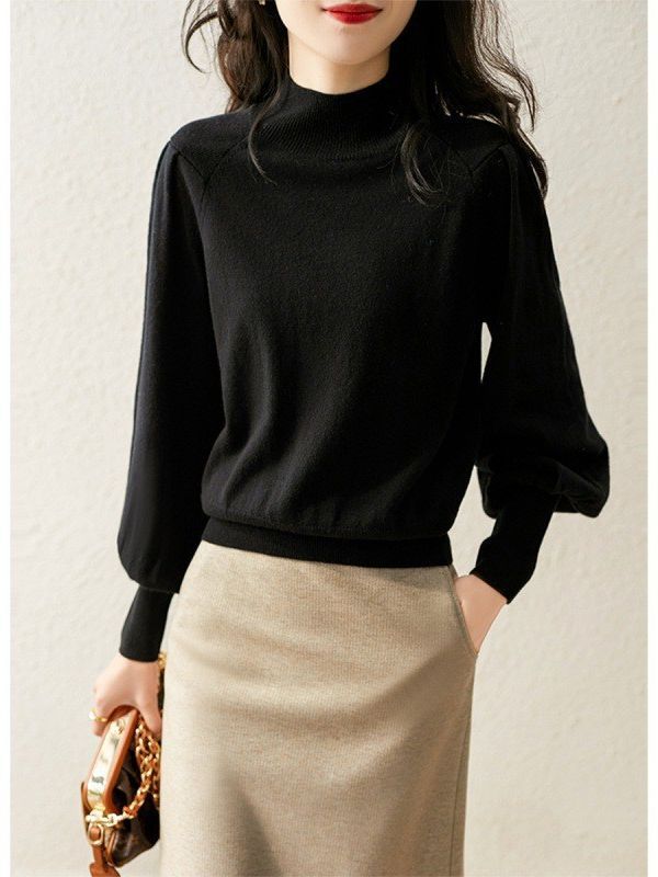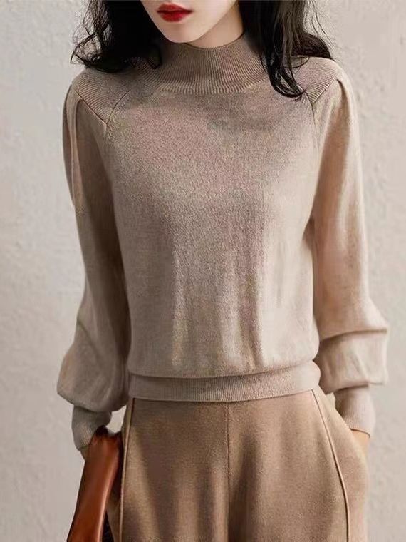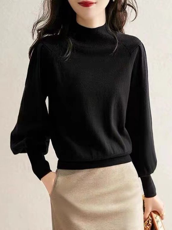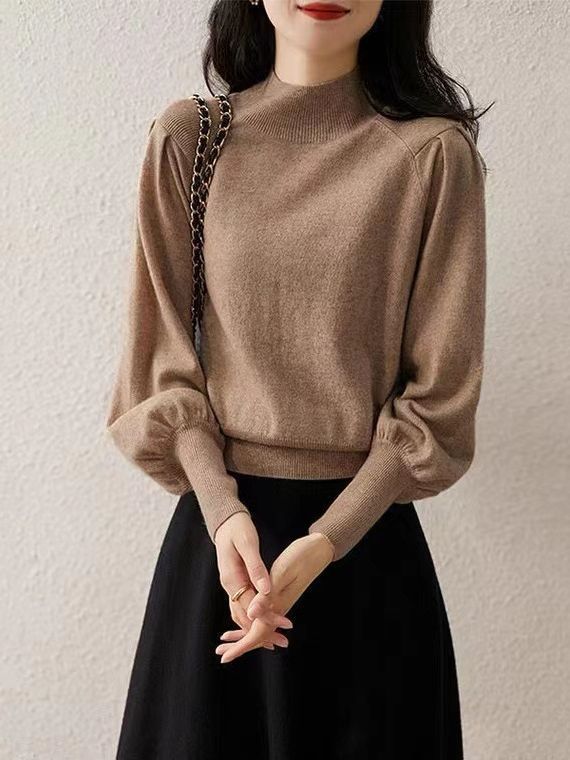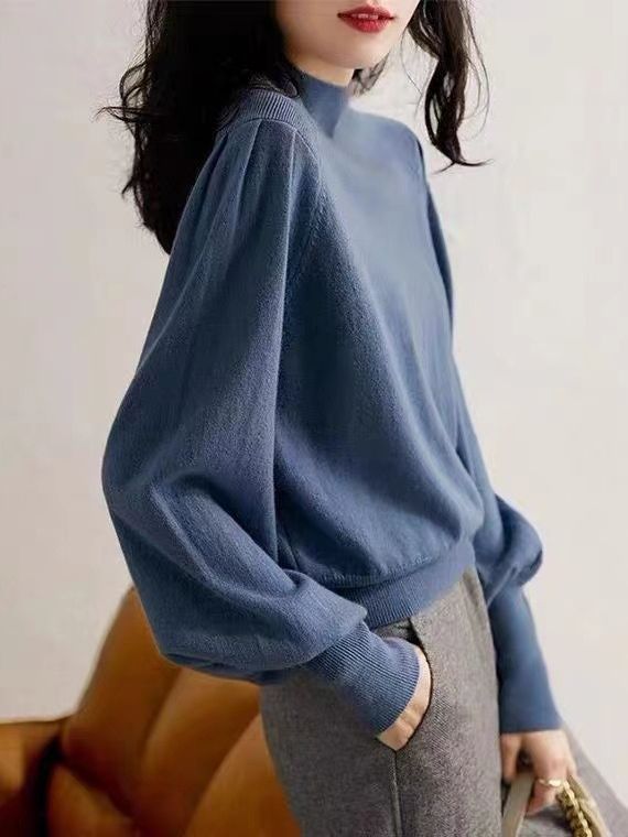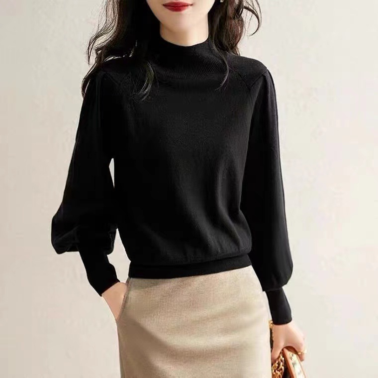 Женский трикотажный свитер с воротником-стойкой, новинка 2024 года, в наличии, осень-зима, разноцветный, свободного кроя, с длинными рукавами, облегающий базовый слой.