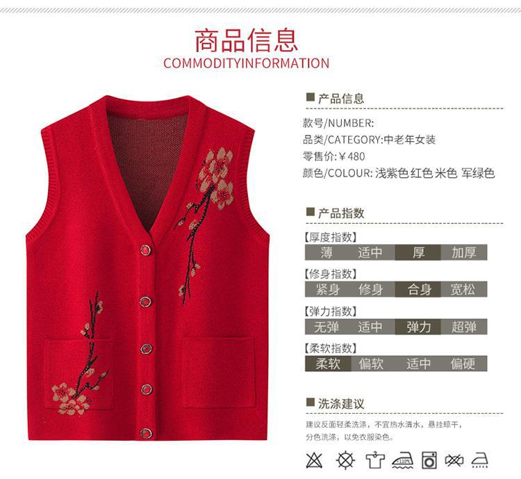 Жилет для бабушки Жилет для мамы Весенне-осенний вязаный свитер для пожилых людей Жилет Женский кардиган Зимняя одежда для среднего и пожилого возраста
