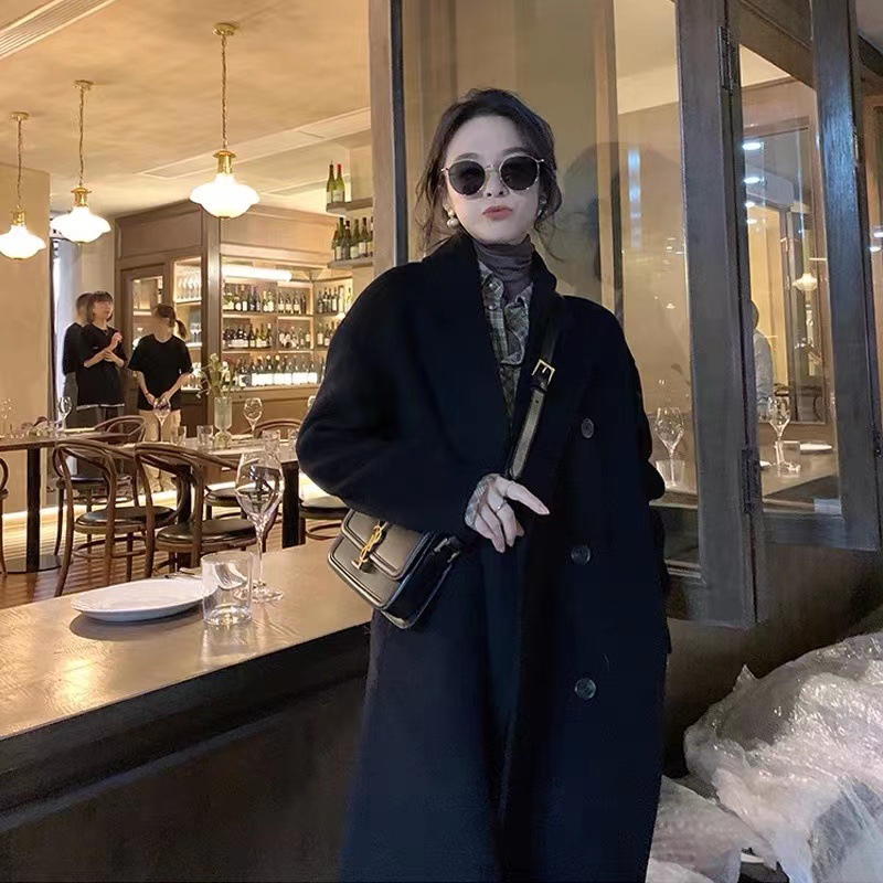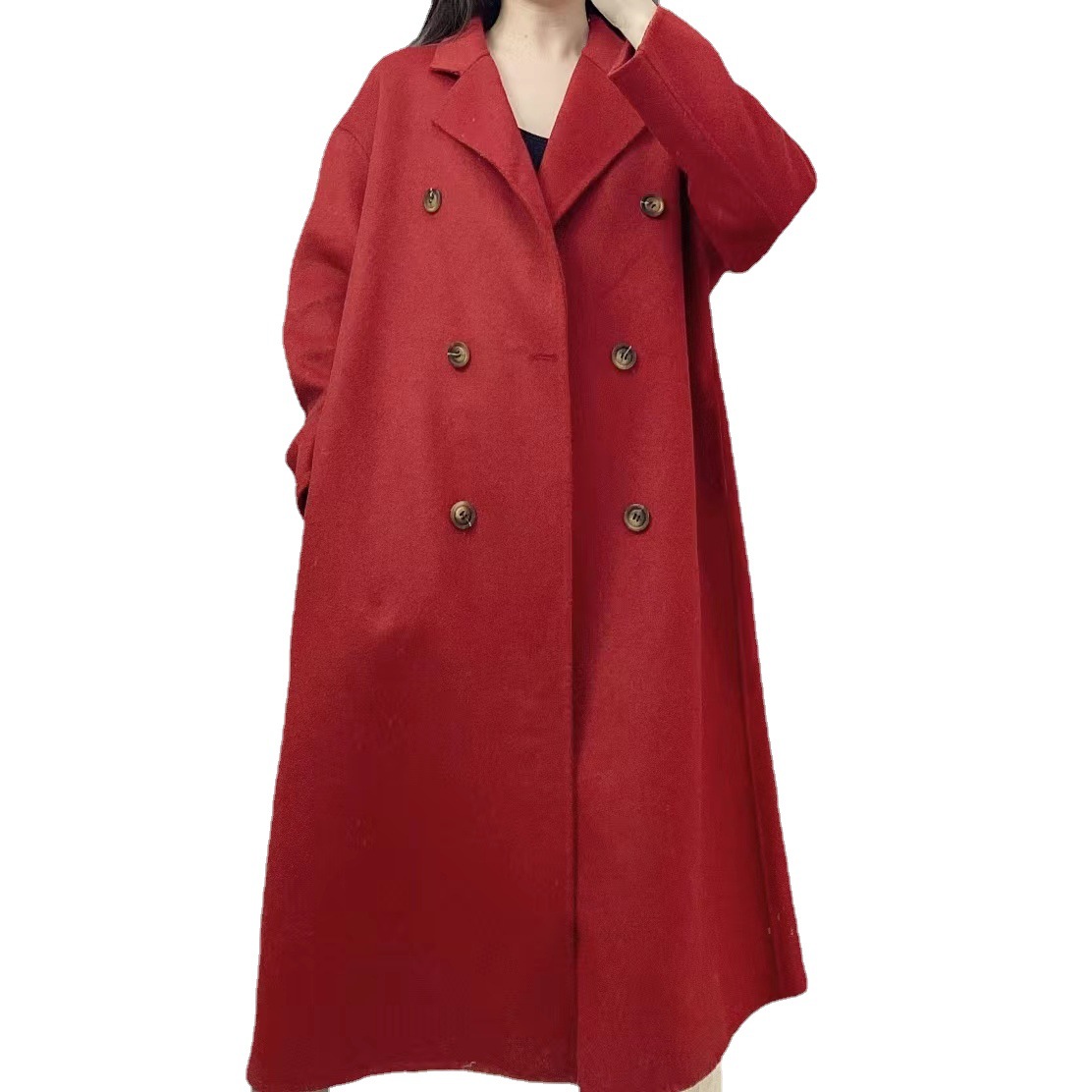 Двустороннее шерстяное пальто 2025 года для женщин, длинное двубортное шерстяное пальто в корейском стиле с воротником-стойкой для миниатюрных женщин, осень-зима