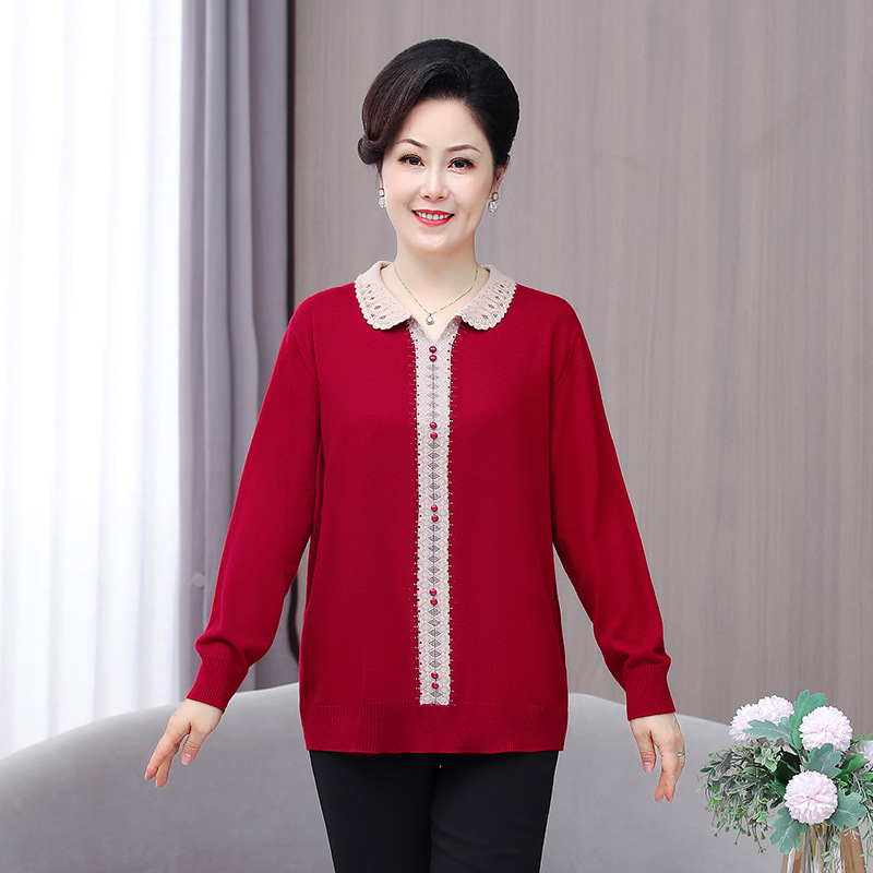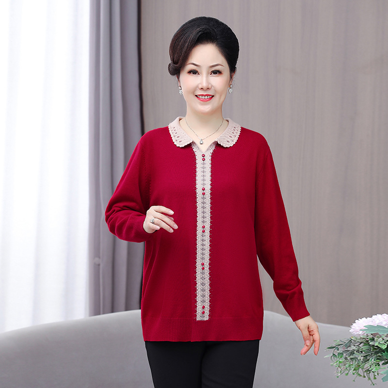 028 Свитер для людей среднего и пожилого возраста, больших размеров, шерстяной свитер из 100kg% шерсти для мам больших размеров.