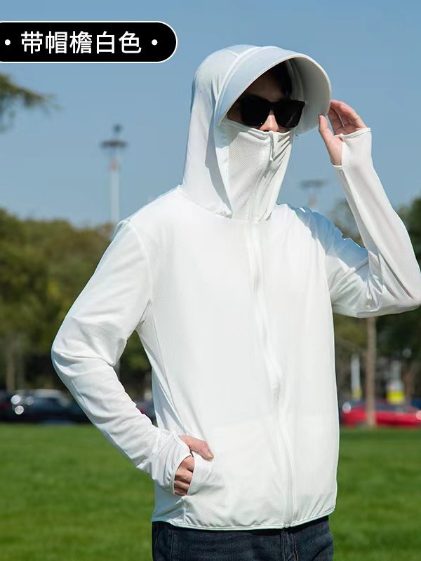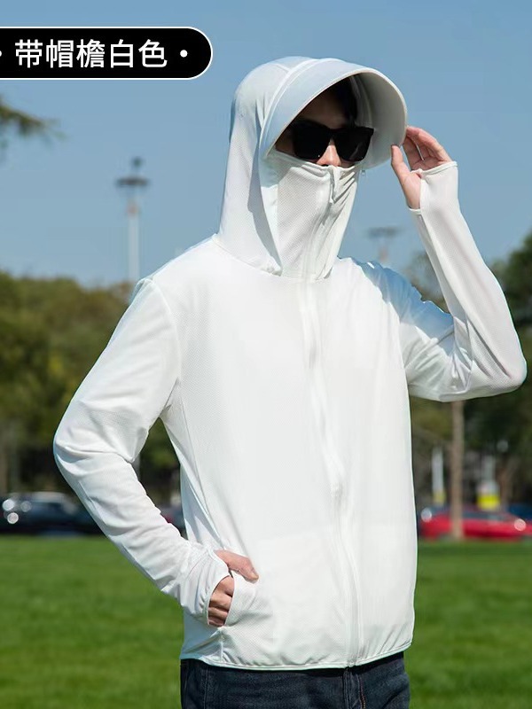 Солнцезащитная одежда для мужчин и женщин со съемным козырьком, летняя дышащая куртка из ледяного шелка для рыбалки.