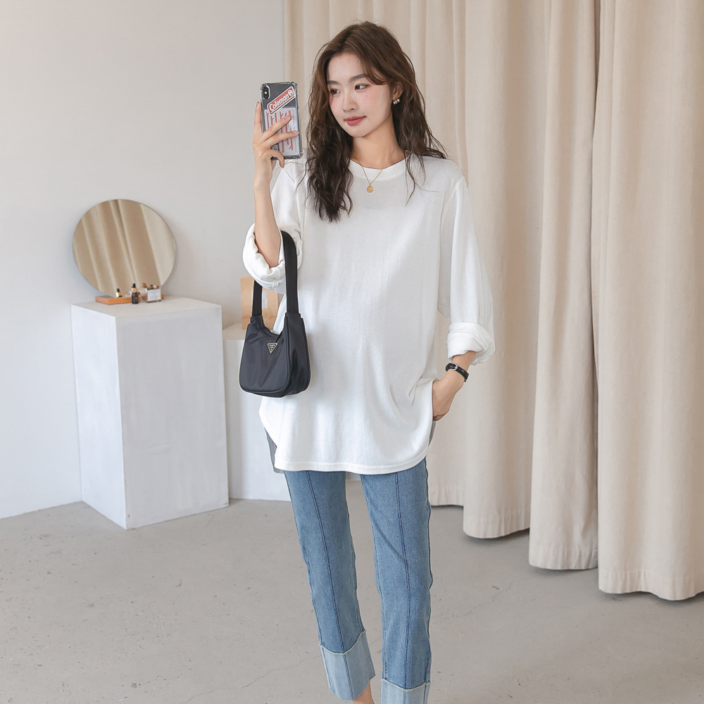 Новое осеннее платье для беременных, модная Корейская рубашка, Легкая Футболка с рукавами, модная Базовая рубашка в иностранном стиле для мамы в начале осени